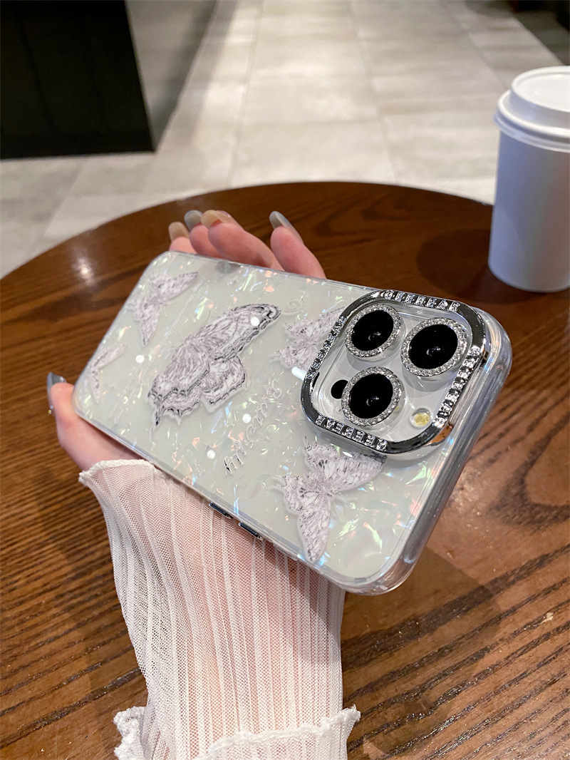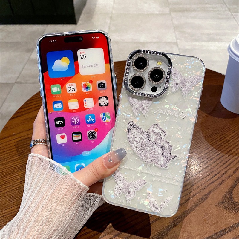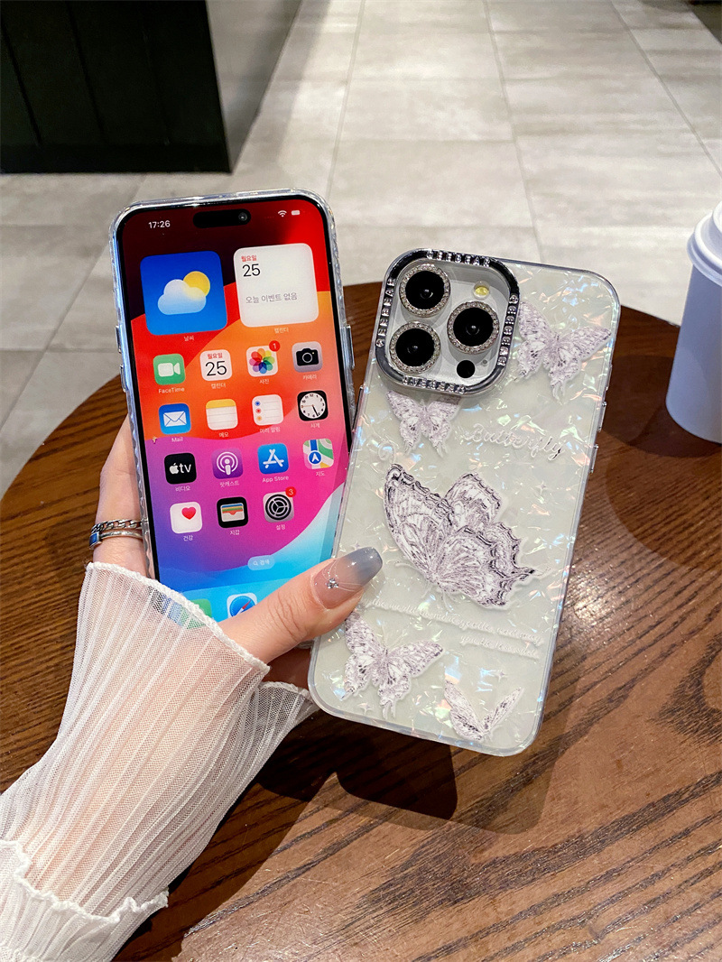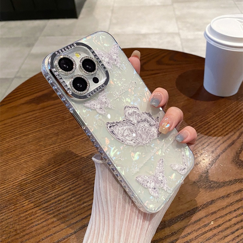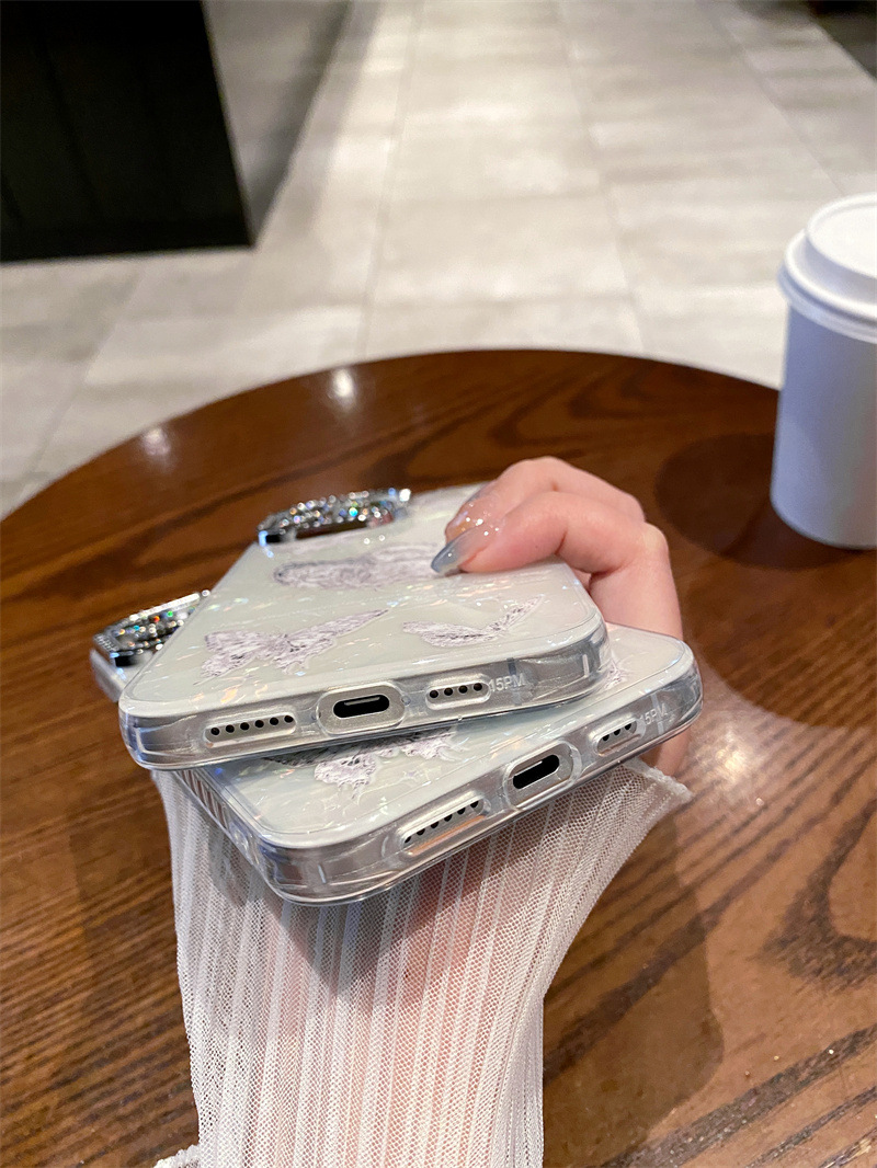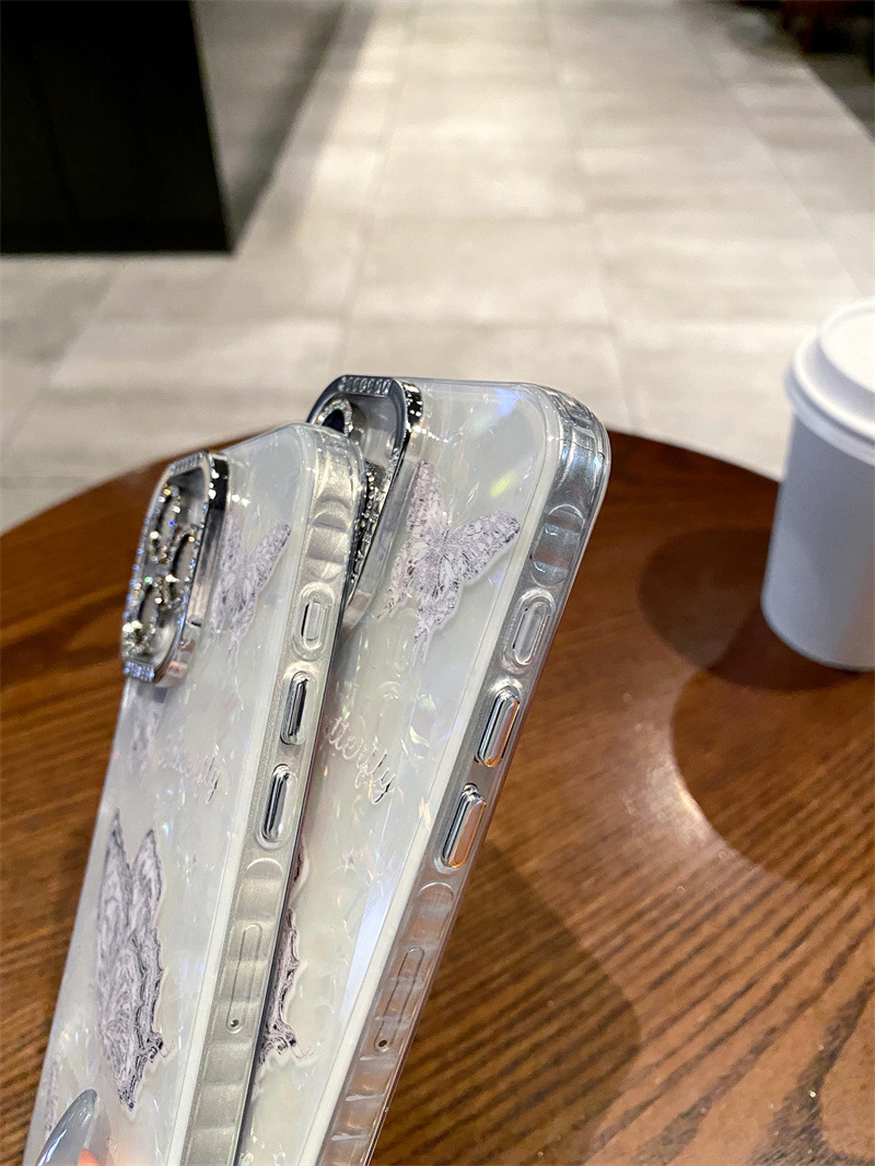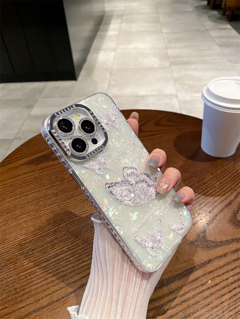 轻奢风贝壳纹蝴蝶适用iPhone15手机壳苹果14promax全包13pro女12