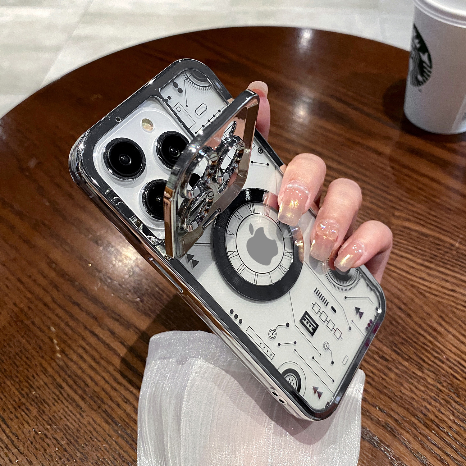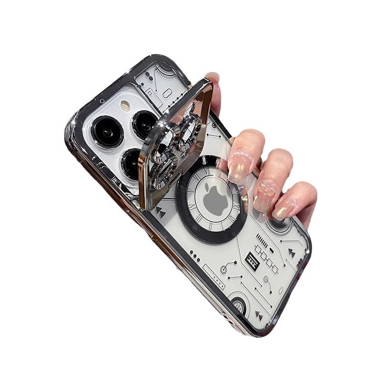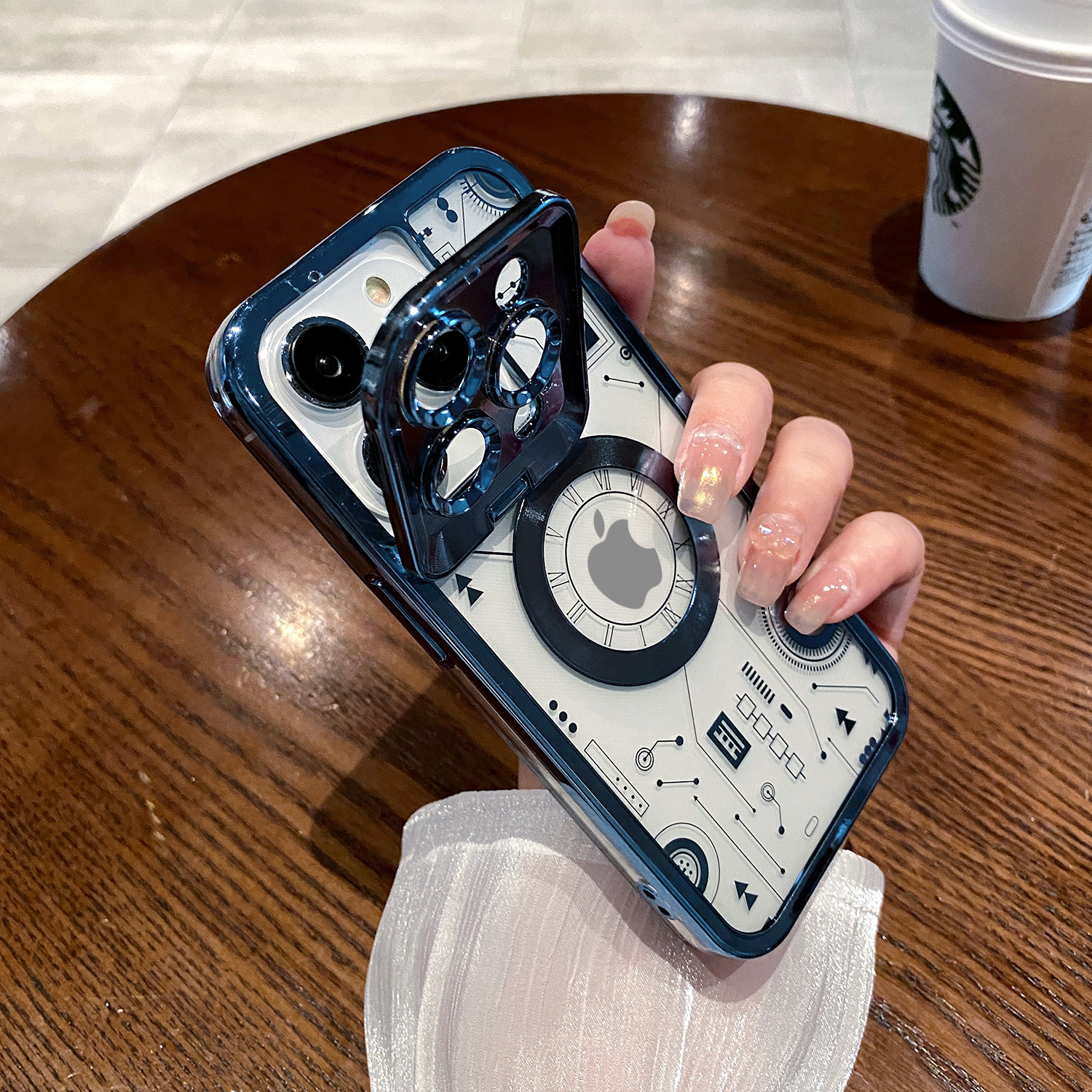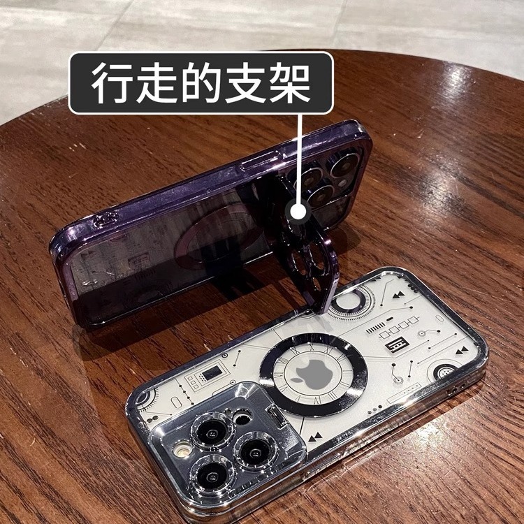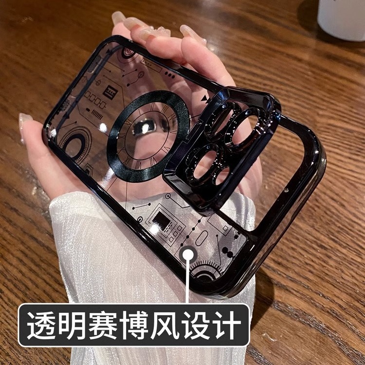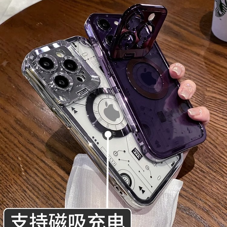 适用iPhone15promax机械磁吸手机壳苹果14翻盖镜头支架13电镀软12