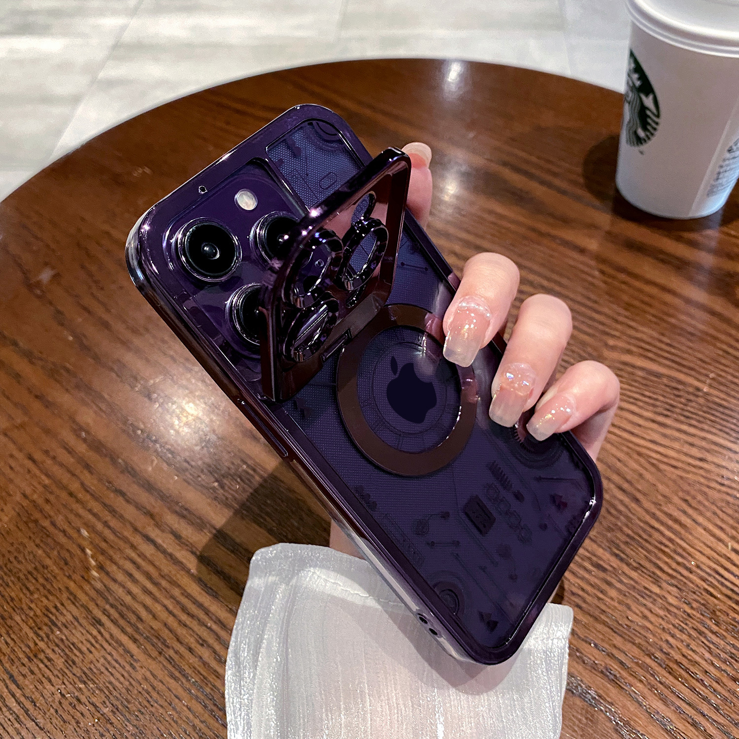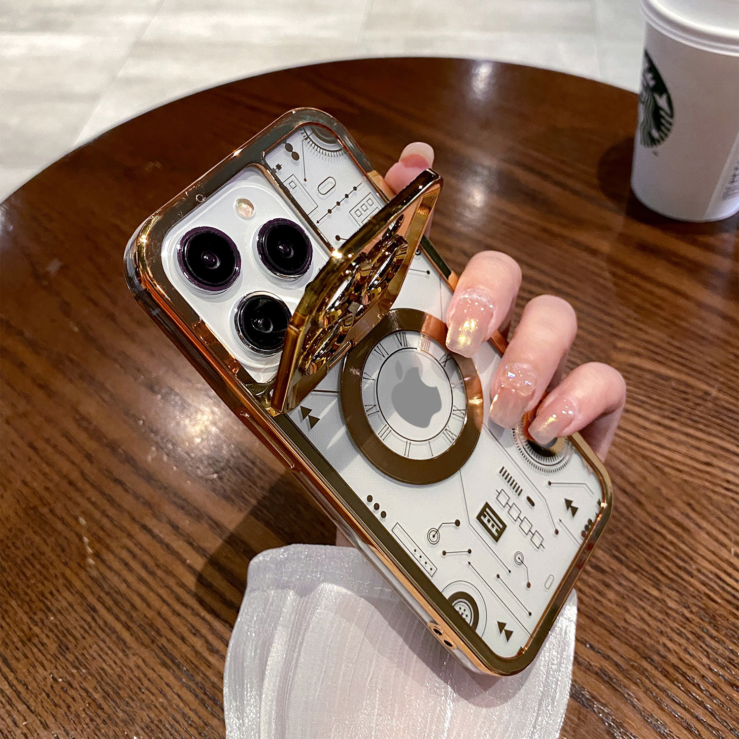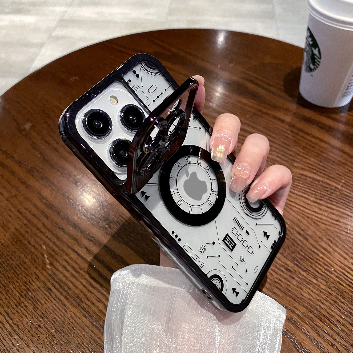 适用iPhone15promax机械磁吸手机壳苹果14翻盖镜头支架13电镀软12