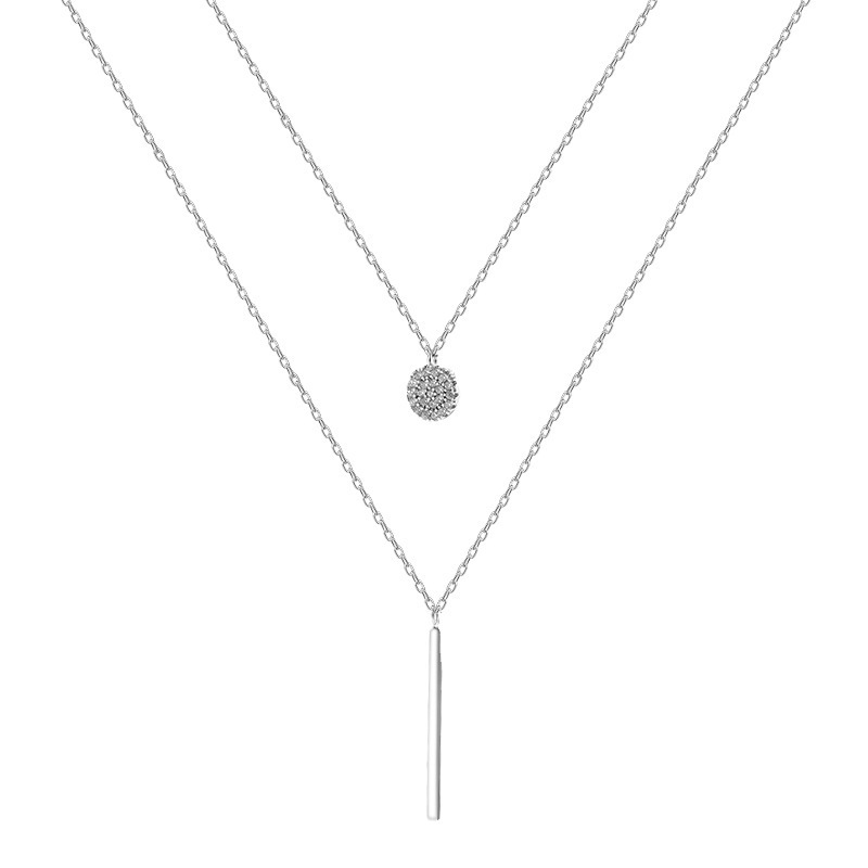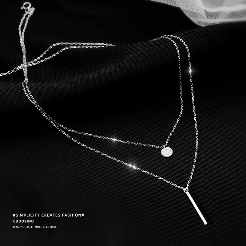 长条闪钻圆形双层项链女锁骨链ins冷淡风气质网红玫瑰金银色链