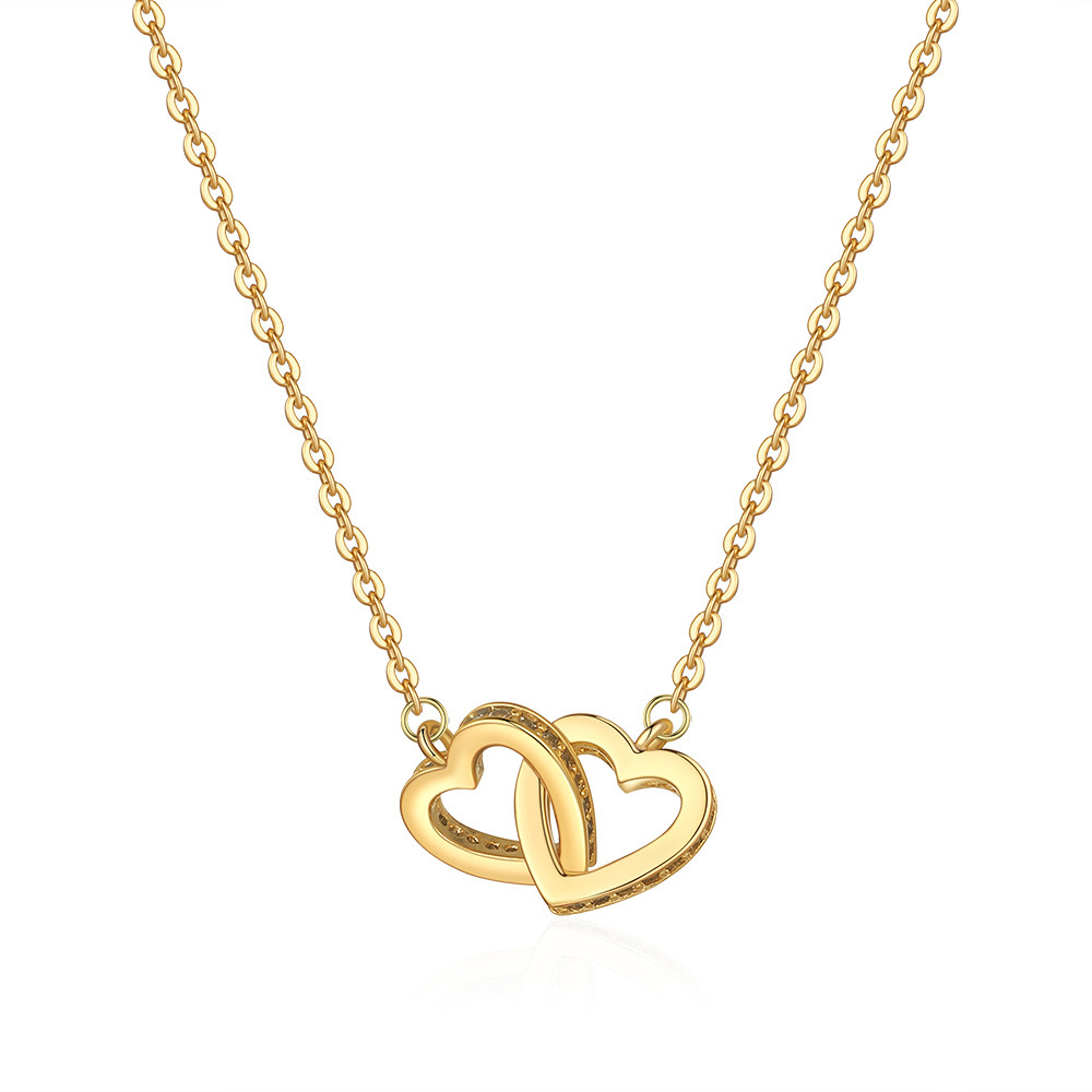 双爱心项链心连心钛钢项链韩版简约吊坠百搭爱心情人节首饰品