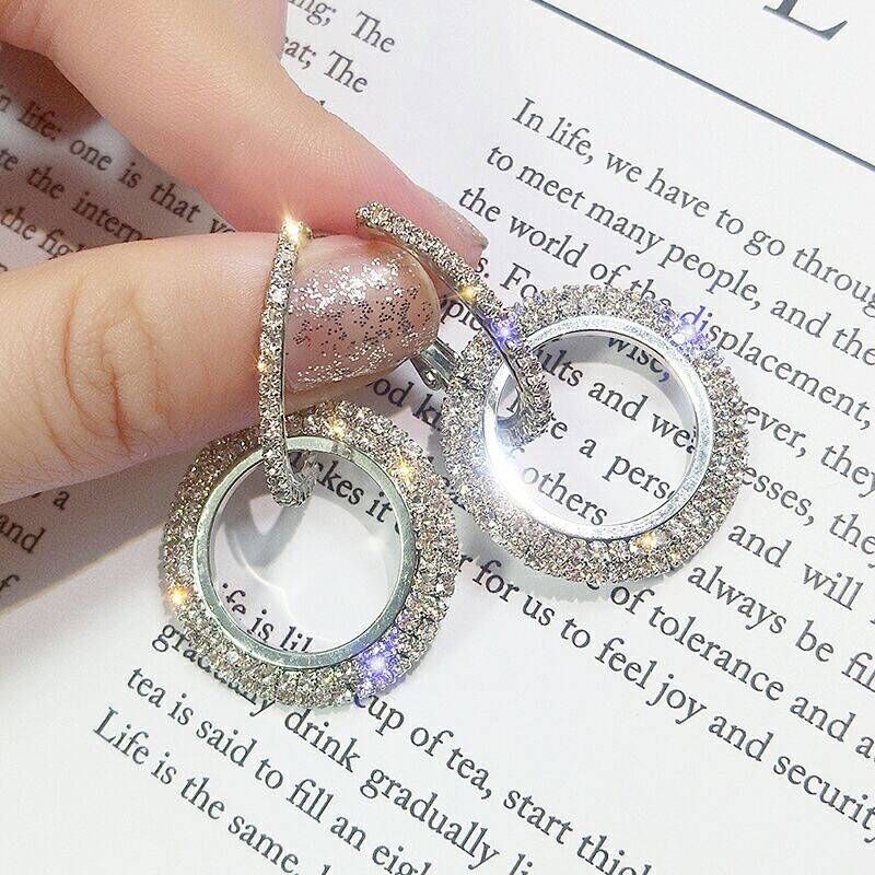 s925银针时尚气质耳环高级感百搭镶钻耳钉双层流苏耳坠耳饰品