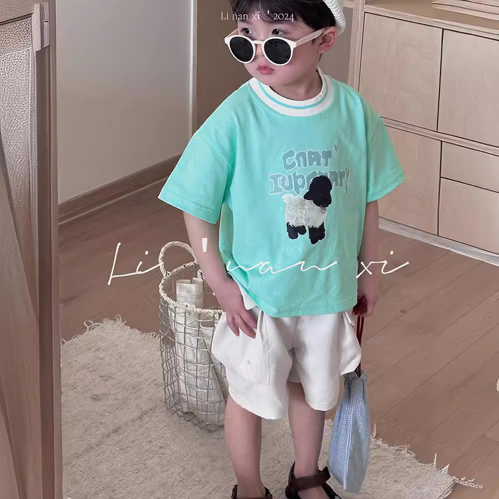 24年夏季新款儿童T恤男女童短袖T宝宝圆领衫短袖针织上衣数码印花