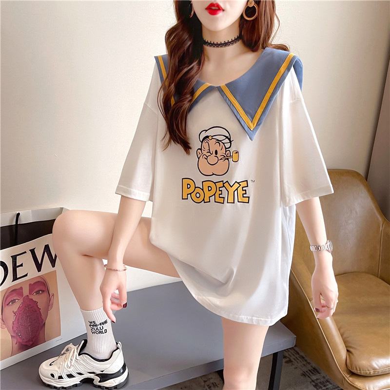 棉质欧货宽松娃娃海军风短袖t恤女2025新款小众设计感洋气上衣潮