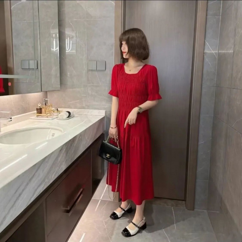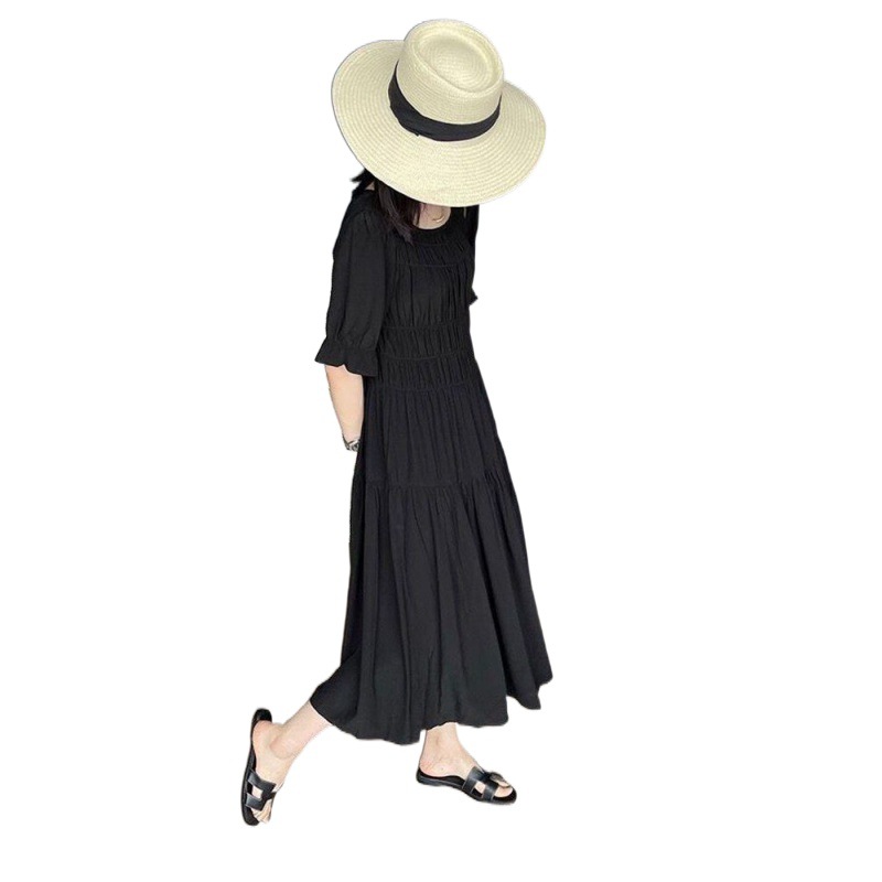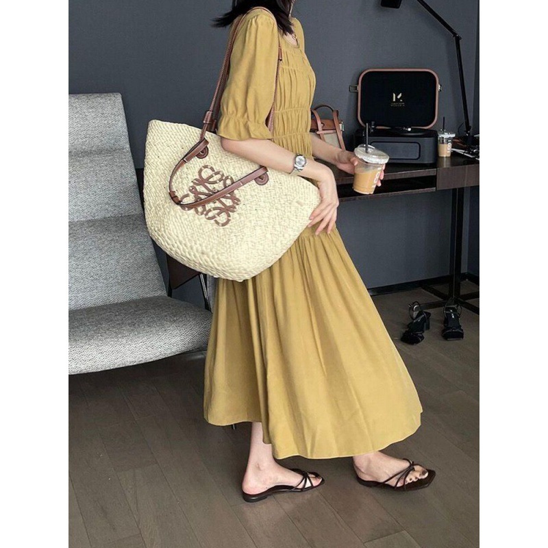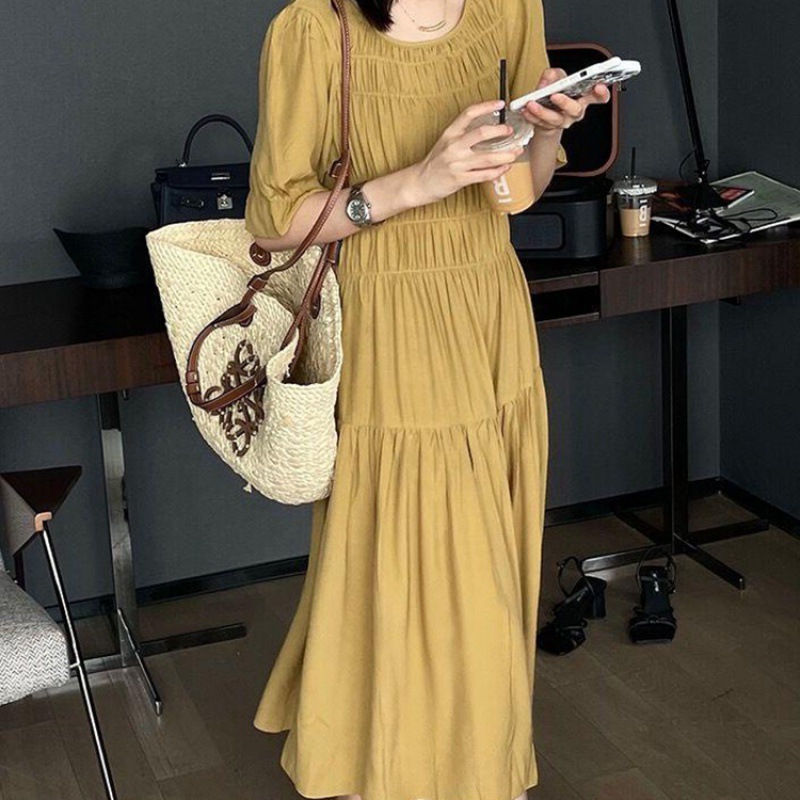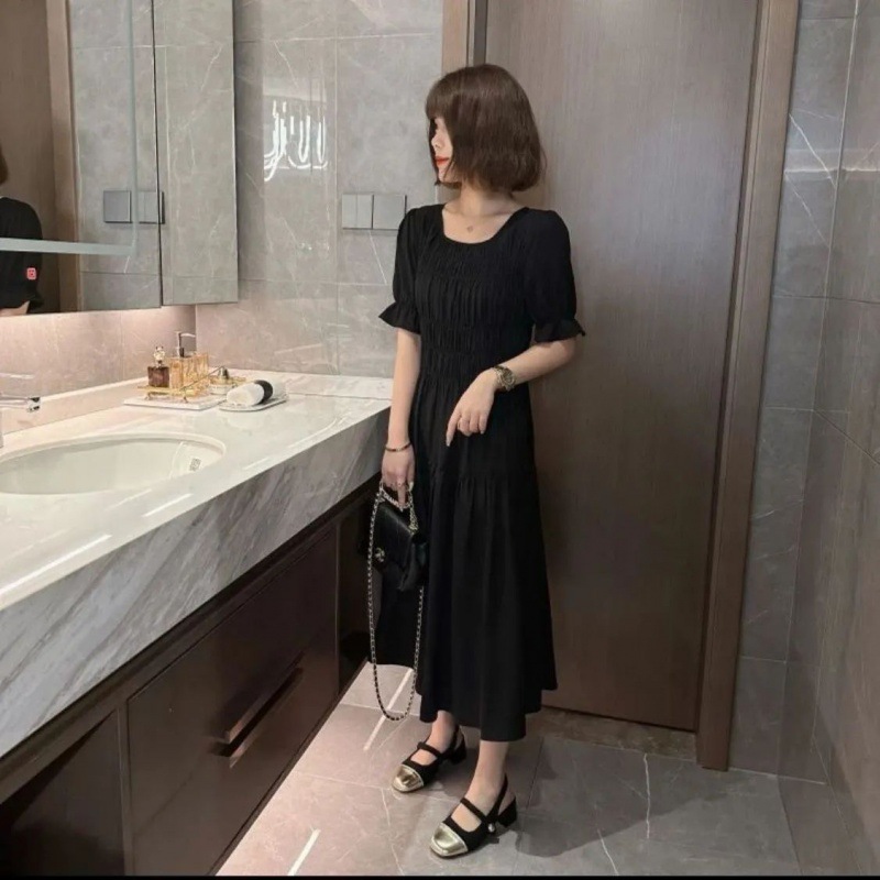 欧货泡泡袖天丝连衣裙女新款收腰显瘦茶歇裙法式初恋桔梗长裙