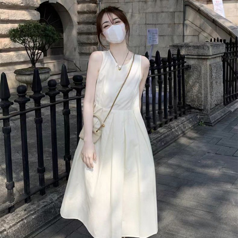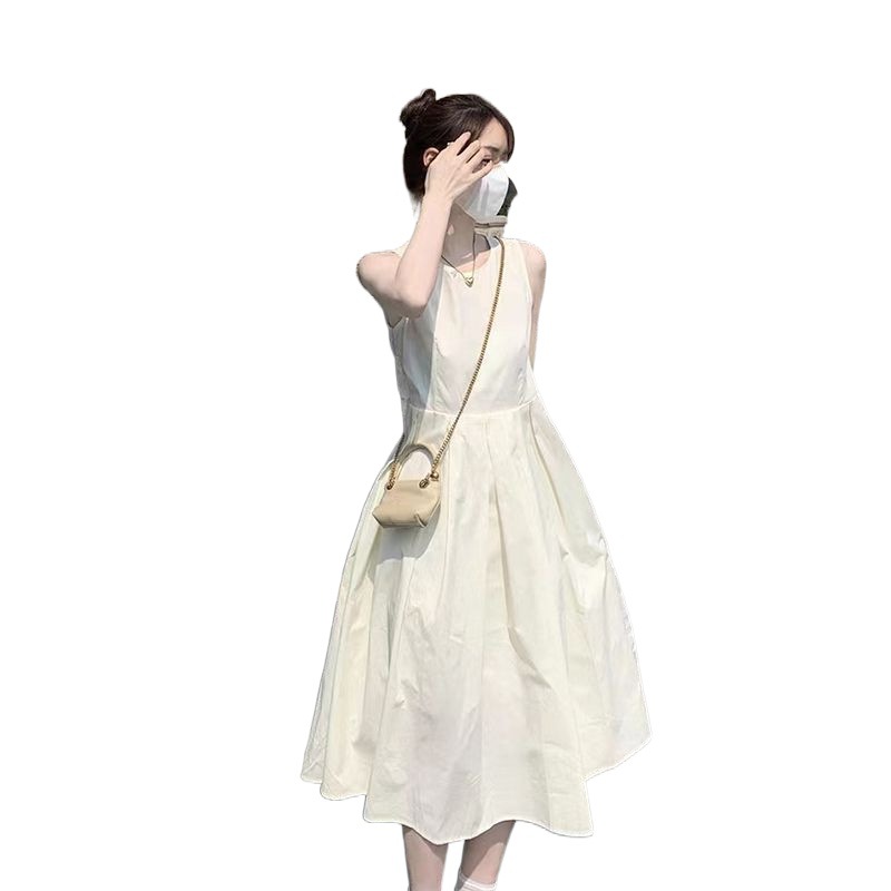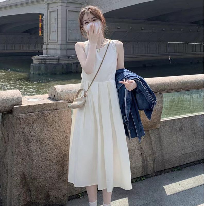 法式白色仙女连衣裙女春夏季新款小个子过膝气质打底背心长裙