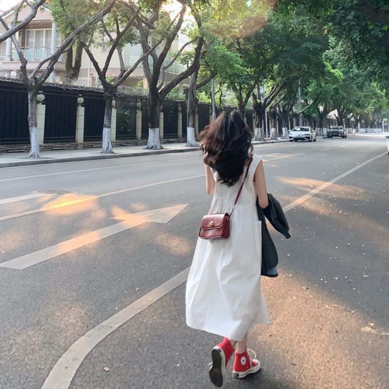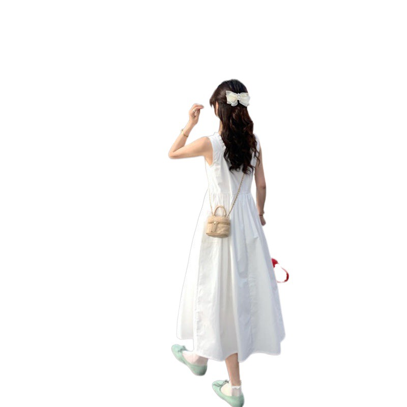 法式裙子海边度假连衣裙女夏季小众设计感宽松无袖背心裙a字长裙