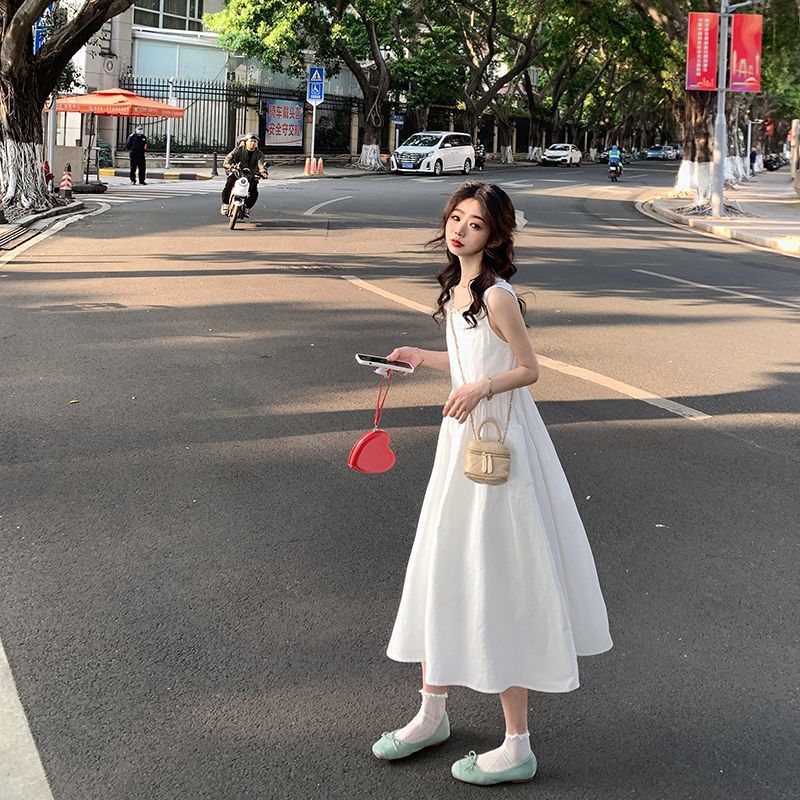 法式连衣裙女春夏新款小个子过膝气质打底背心长裙大摆裙