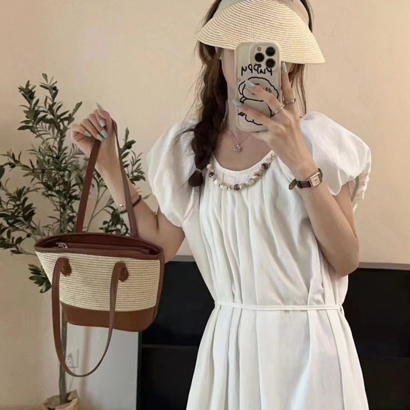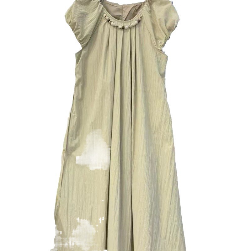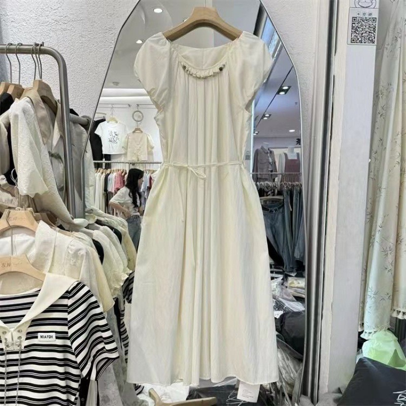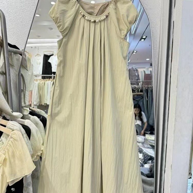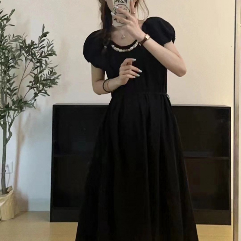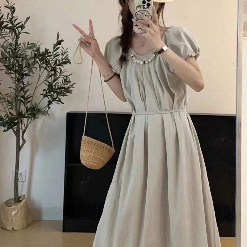 连衣裙夏季过膝长裙法式新款温柔泡泡气质收腰短袖宽松显瘦