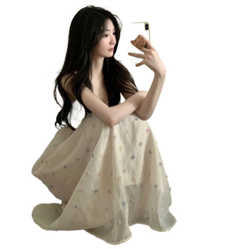 海边度假风仙吊带长裙温柔风V领露背连衣裙女夏季新款