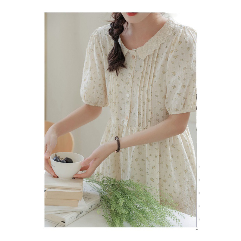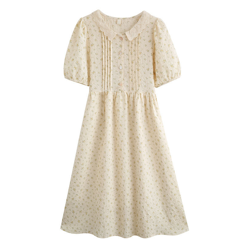 韩系裙子女夏夏季新款法式复古森系小个子显瘦气质碎花连衣裙