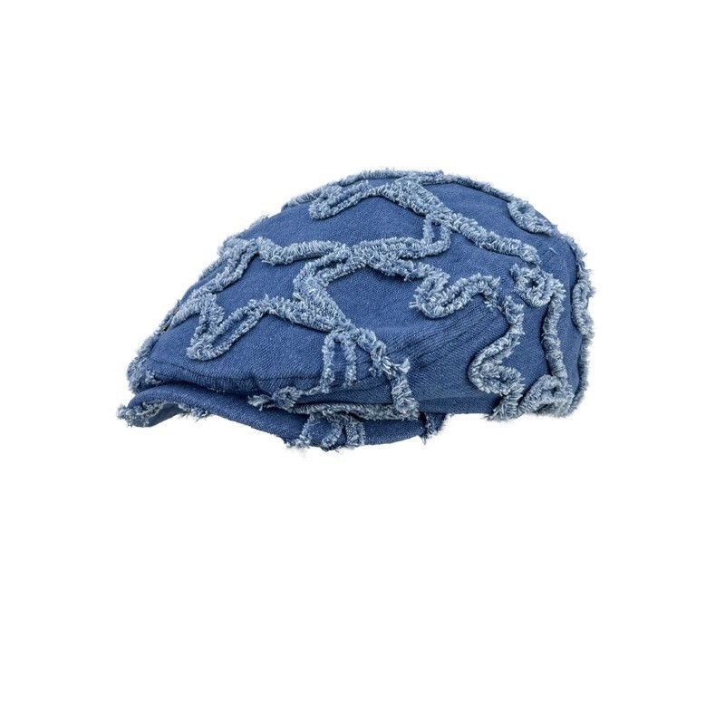 毛边星星牛仔前进帽反戴贝雷帽女夏水洗做旧报童帽百搭大头围帽子