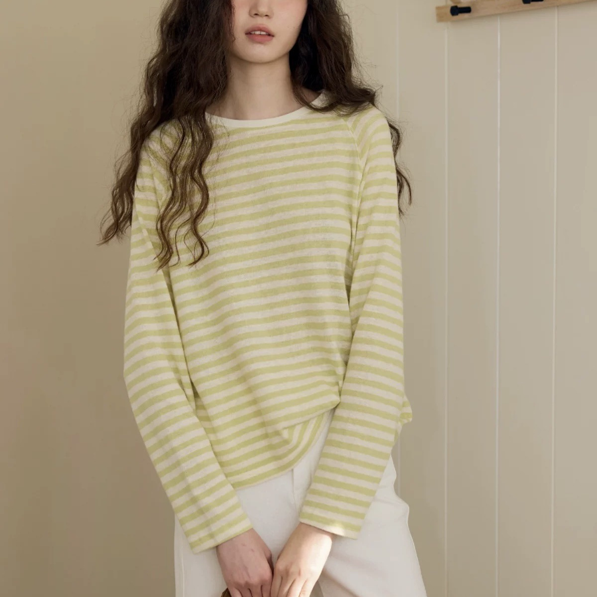 巨显瘦斜肩条纹休闲上衣防晒薄款长袖T恤