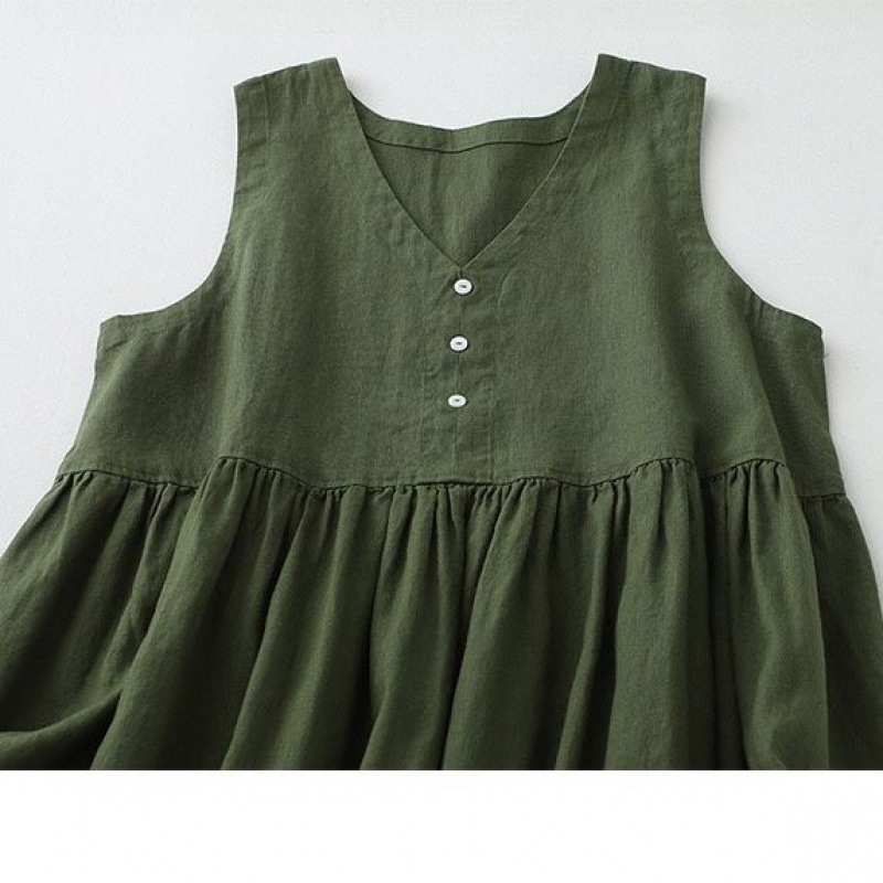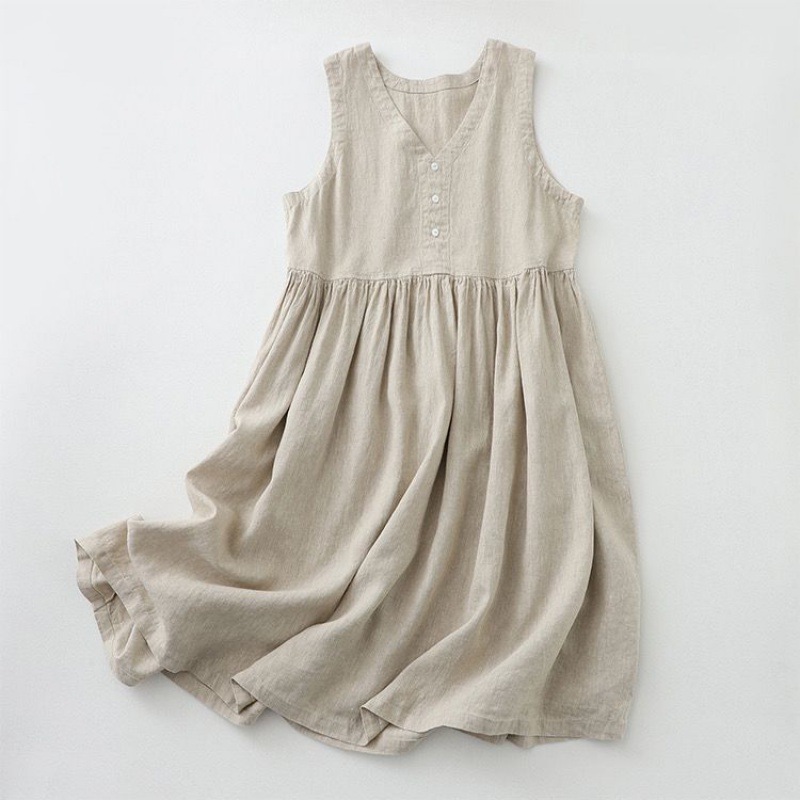 棉麻日系简约纯色背心款夏季宽松大码遮肚显瘦减龄无袖连衣裙