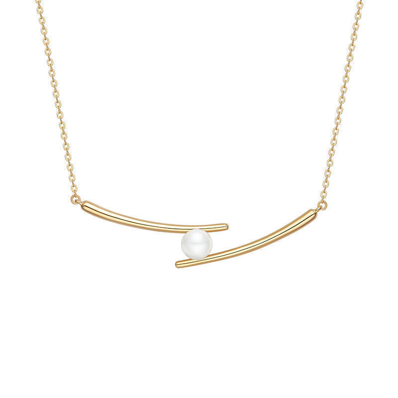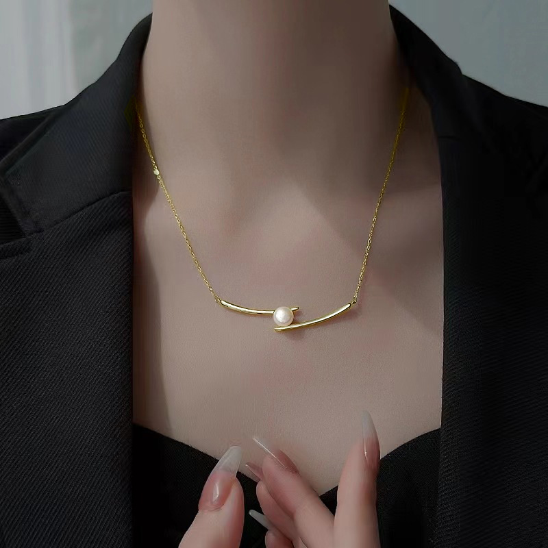 韩版轻奢简约筷子珍珠项链女 小众设计微笑款高级感气质锁骨链