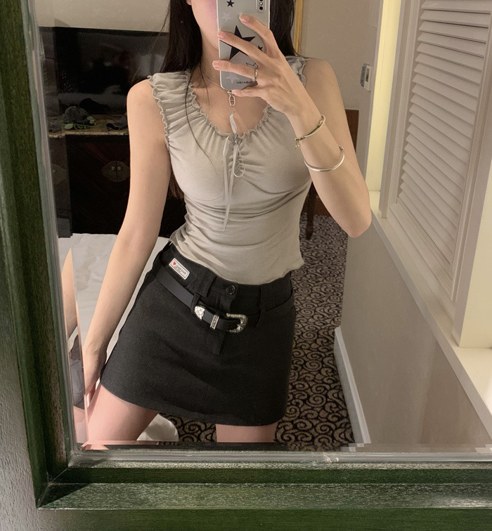 辣妹纯欲风系带吊带背心女夏修身显瘦内搭设计感花边短款叠穿上衣