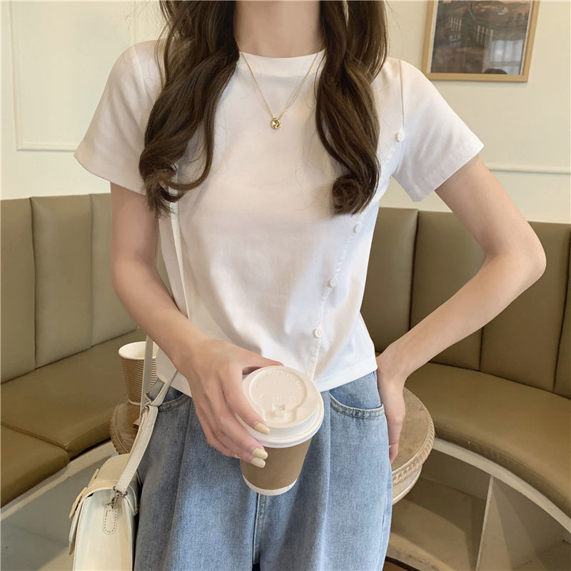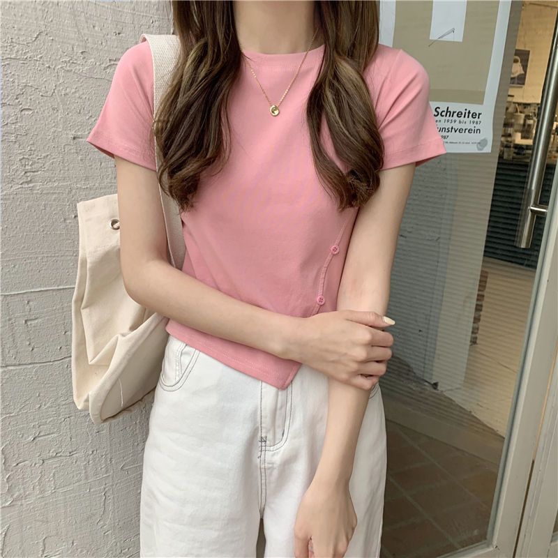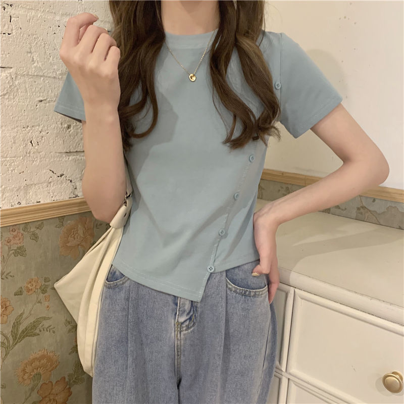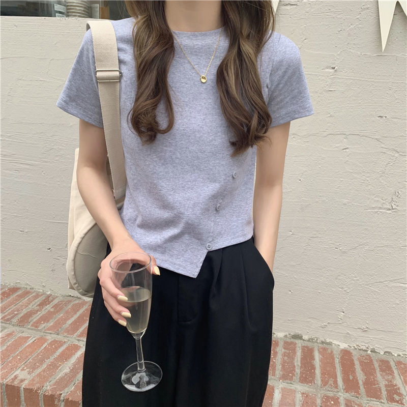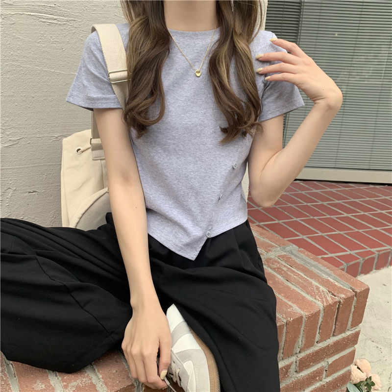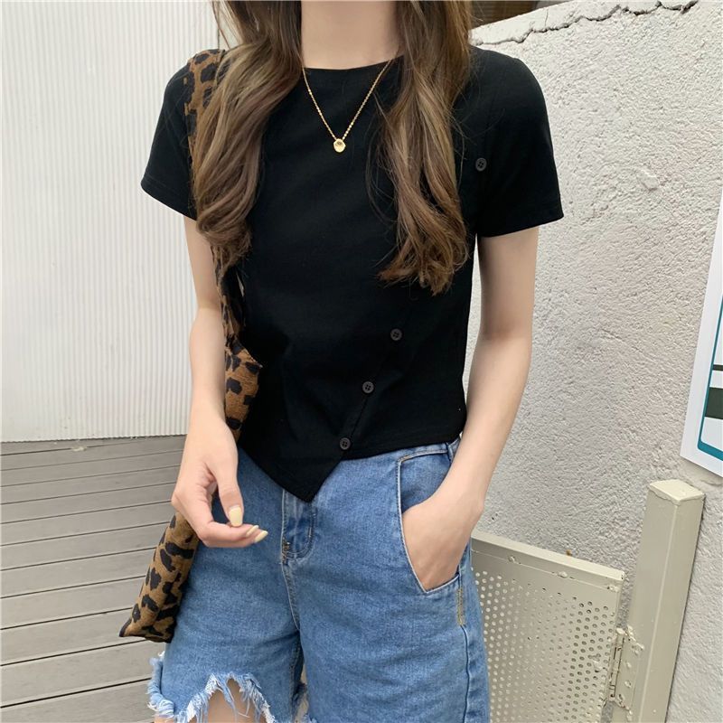 小个子不规则短袖T恤女设计感法式小众别致甜辣妹短款上衣服ins潮