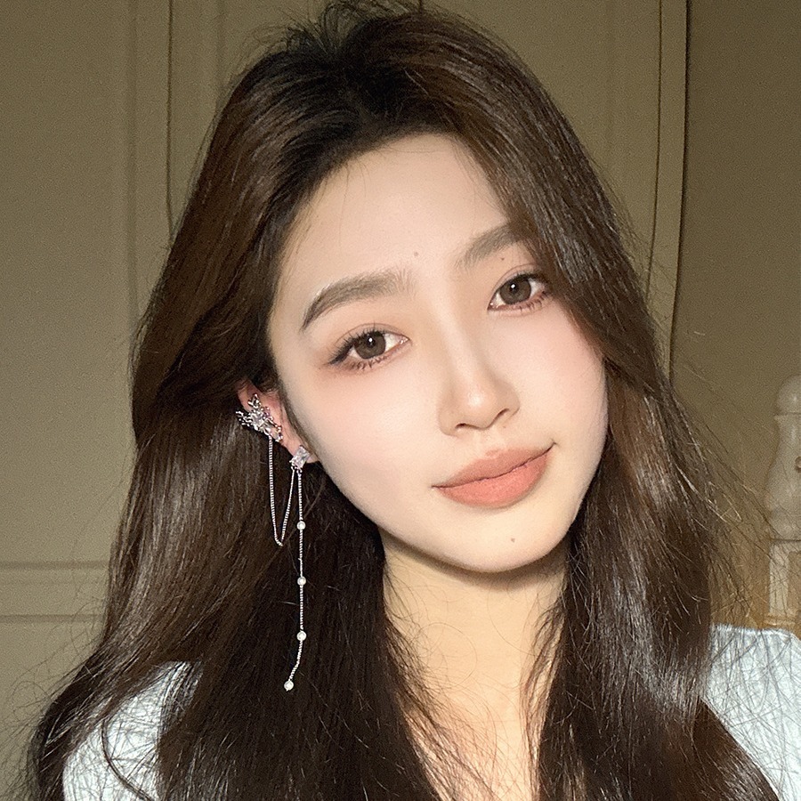 气质纯欲蝴蝶珍珠流苏耳环耳夹一体式独特小众高级感个性耳钉耳饰