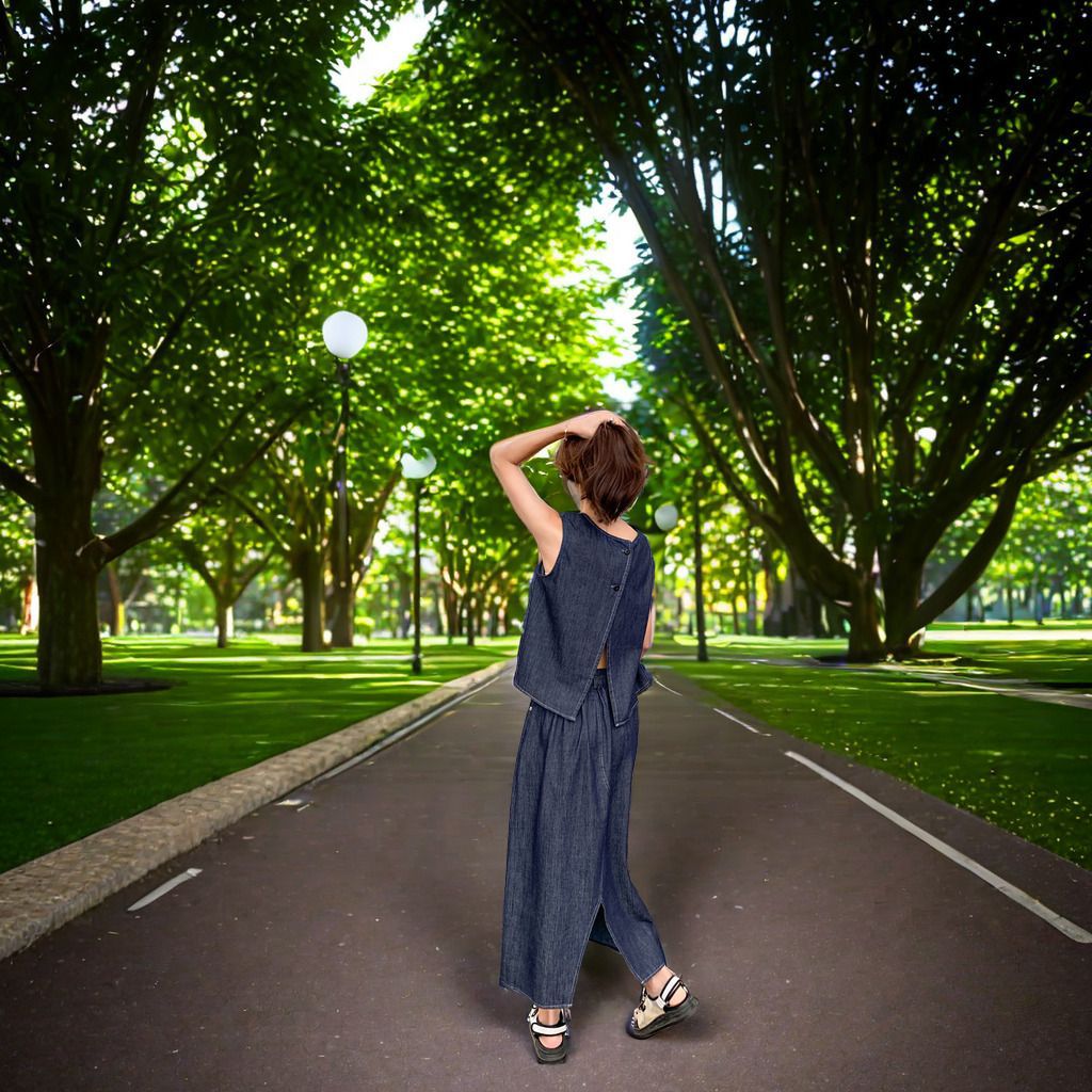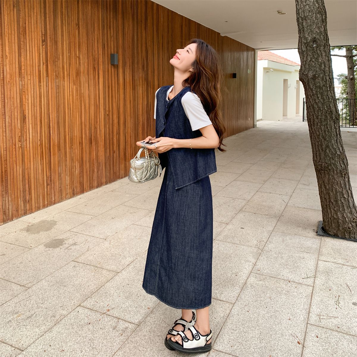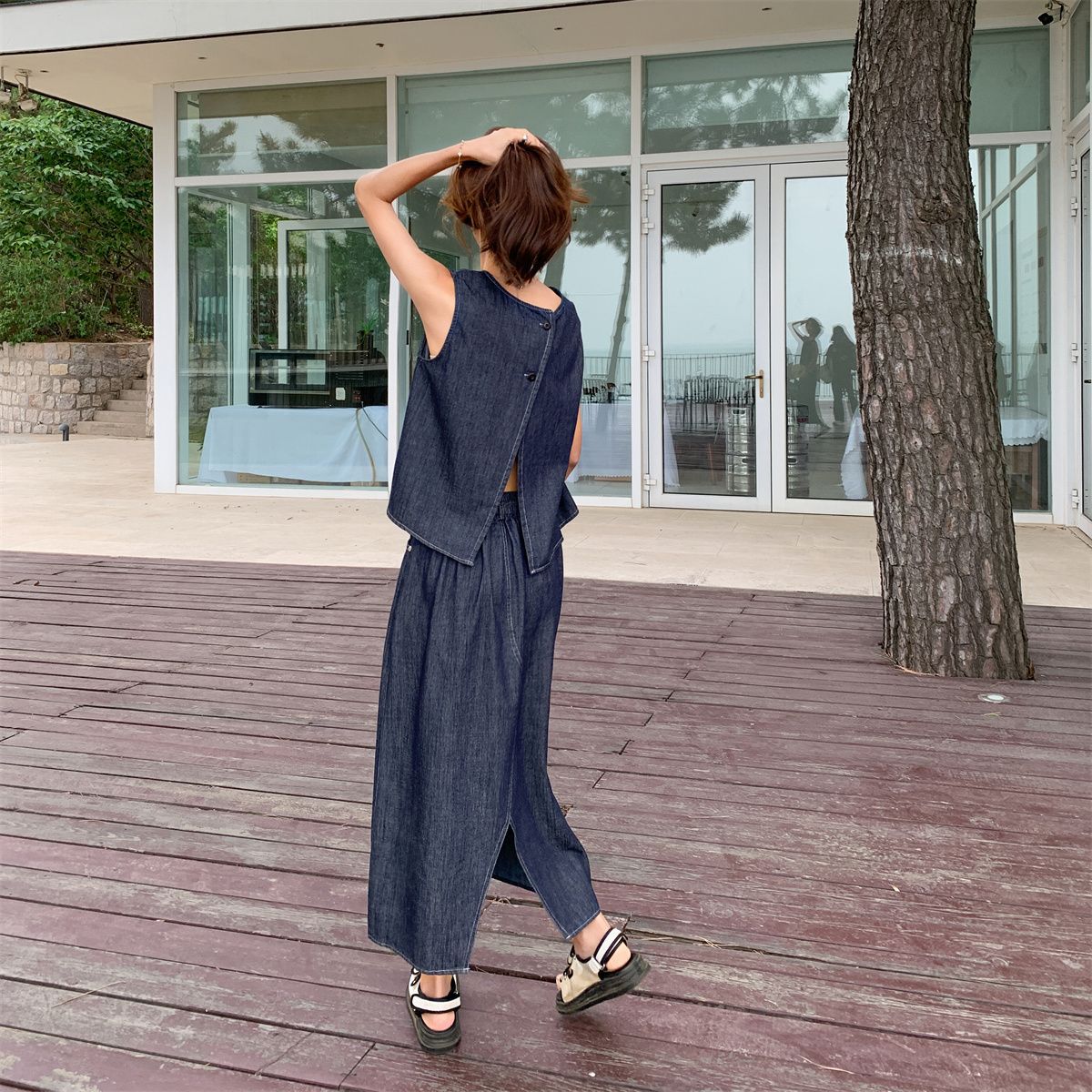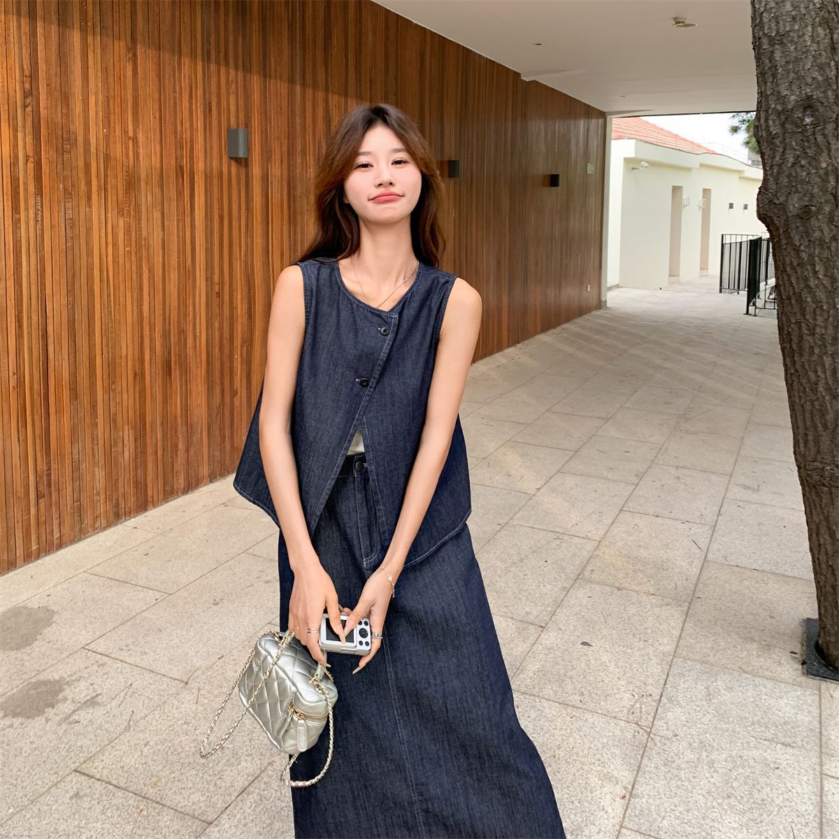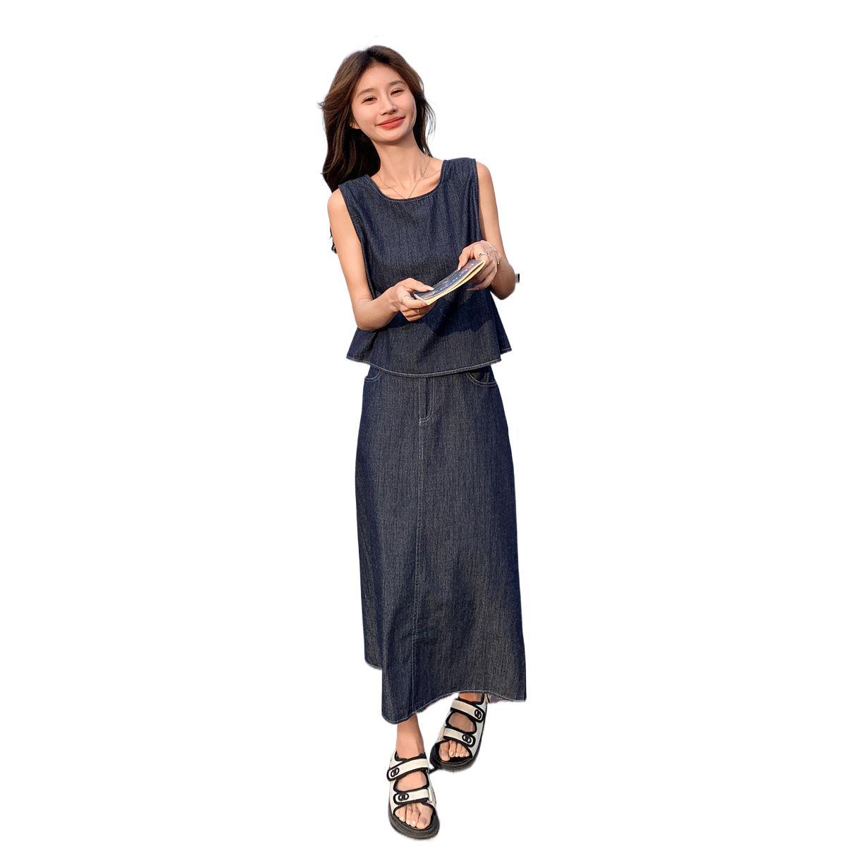 设计感牛仔休闲套装裙女夏新款无袖上衣半身裙气质显瘦两件套