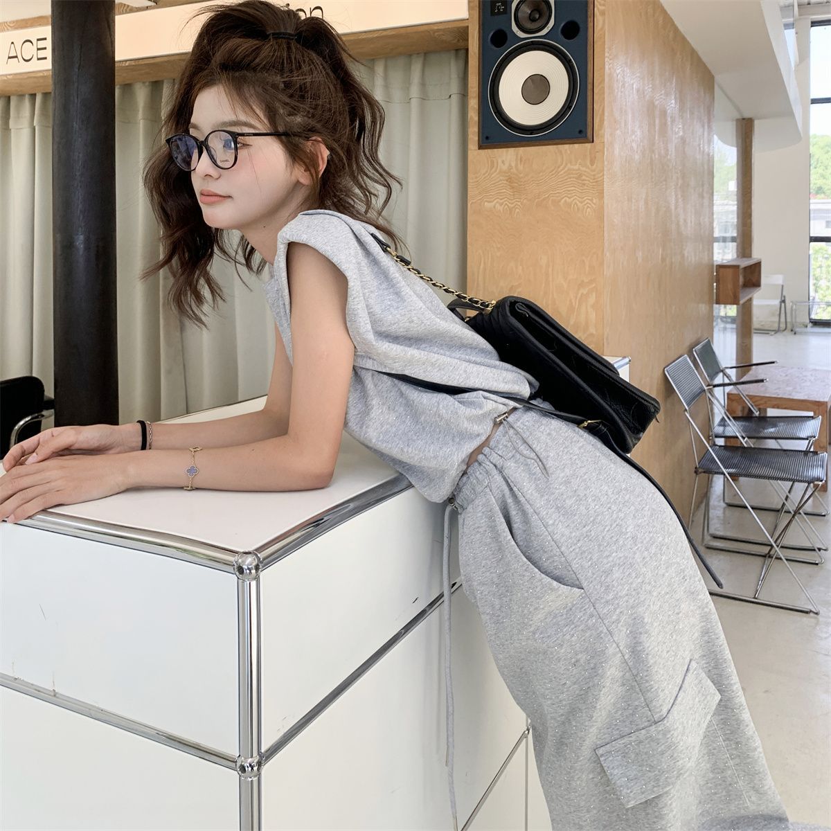 纯欲别致独特美式复古辣妹短款露脐背心外穿修身小众无袖上衣女