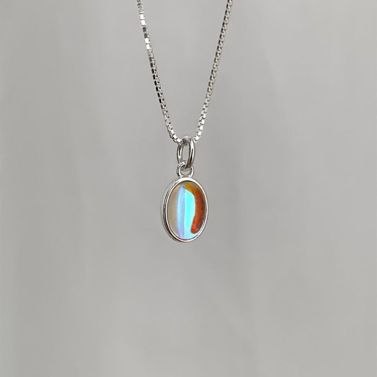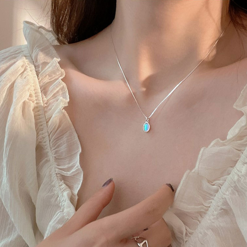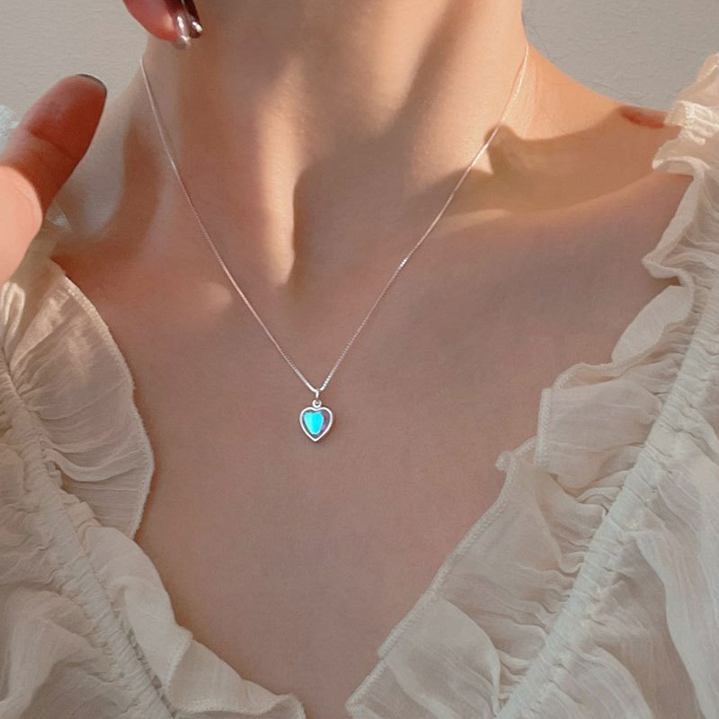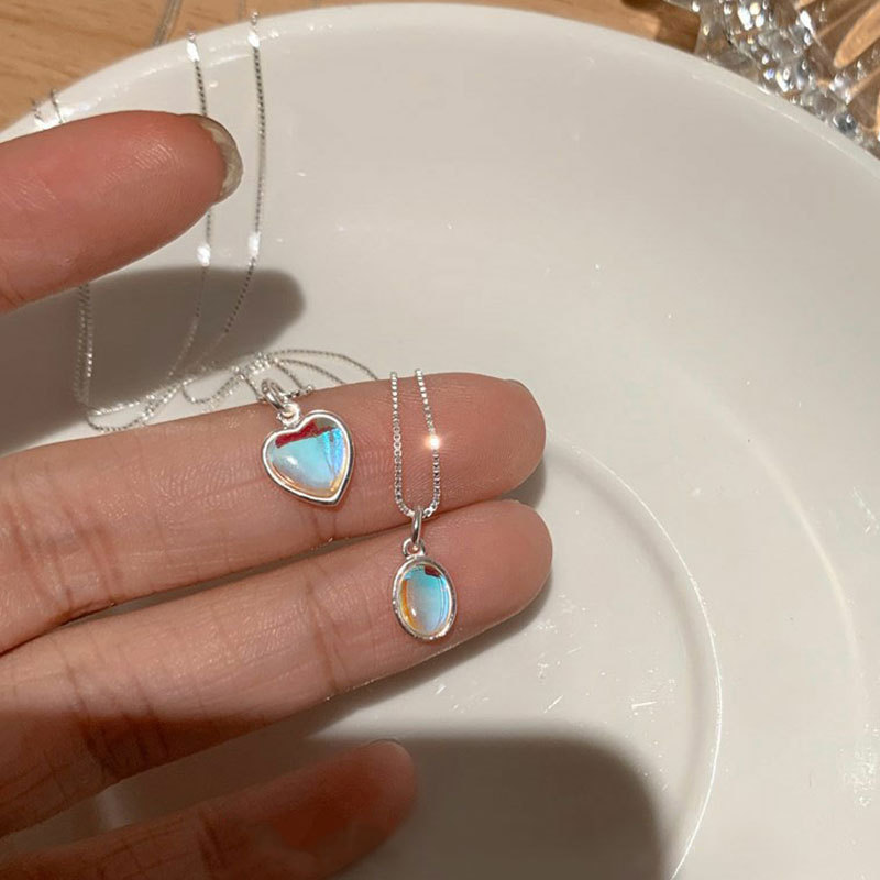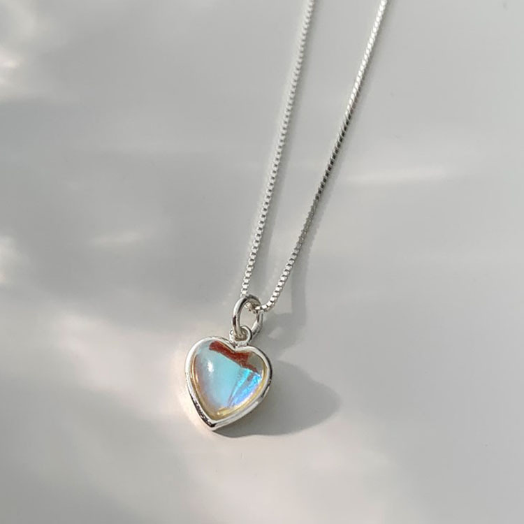 蒂奇人造月光石爱心几何设计项链925纯银ins风高级感锁骨链冷淡风