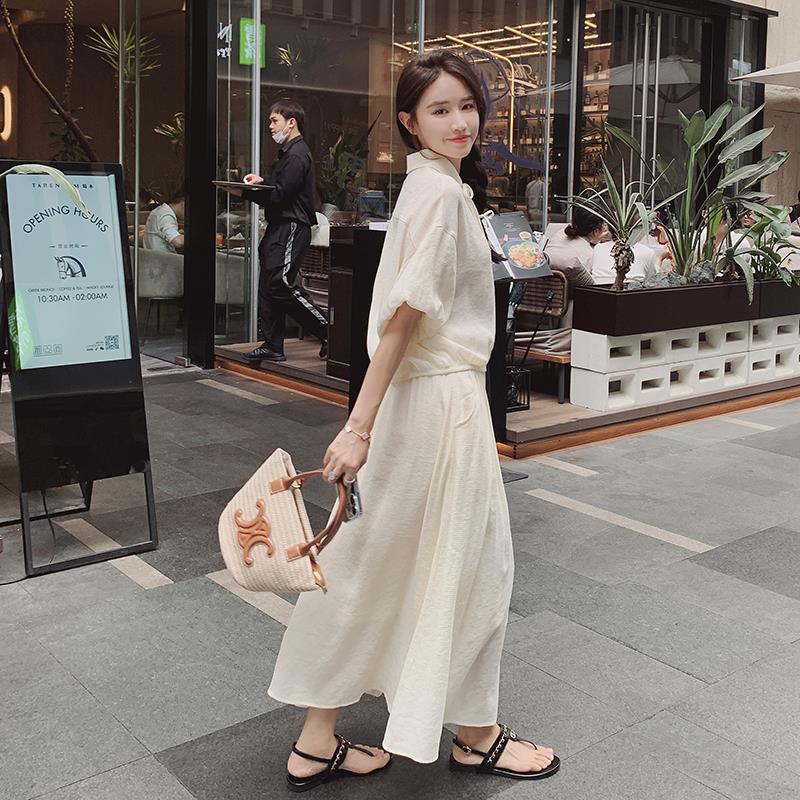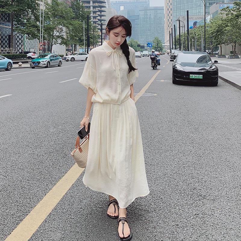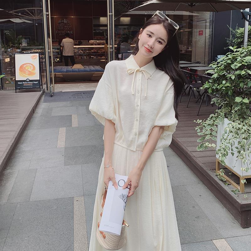 时尚休闲慵懒风套装裙女夏新款甜美减龄少女简约半身裙两件套