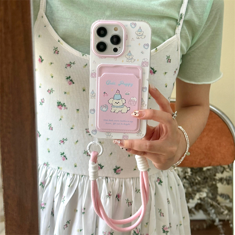 适用iPhone14捆绑手机壳苹果15promax手提绳13pro卡通小狗12/11女
