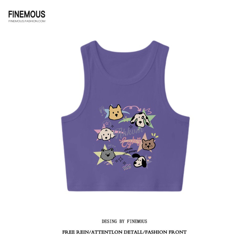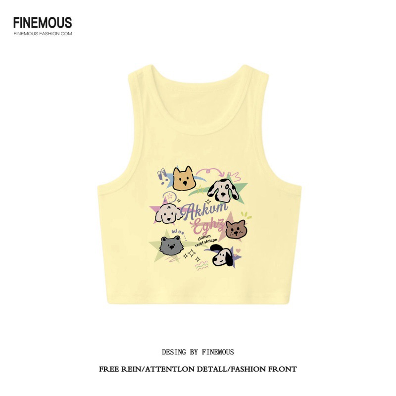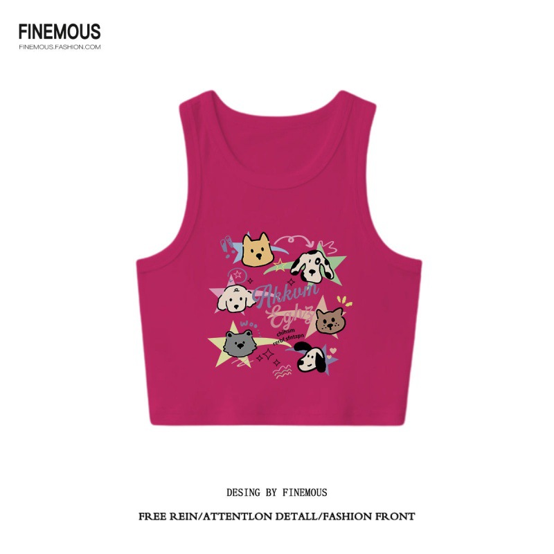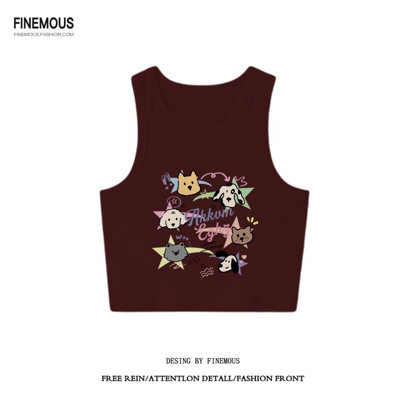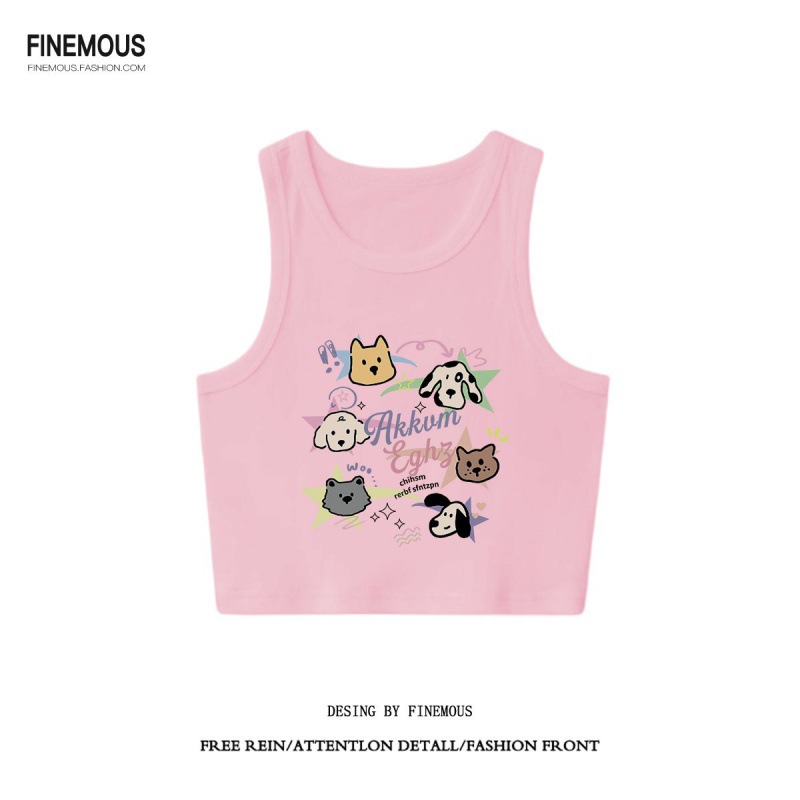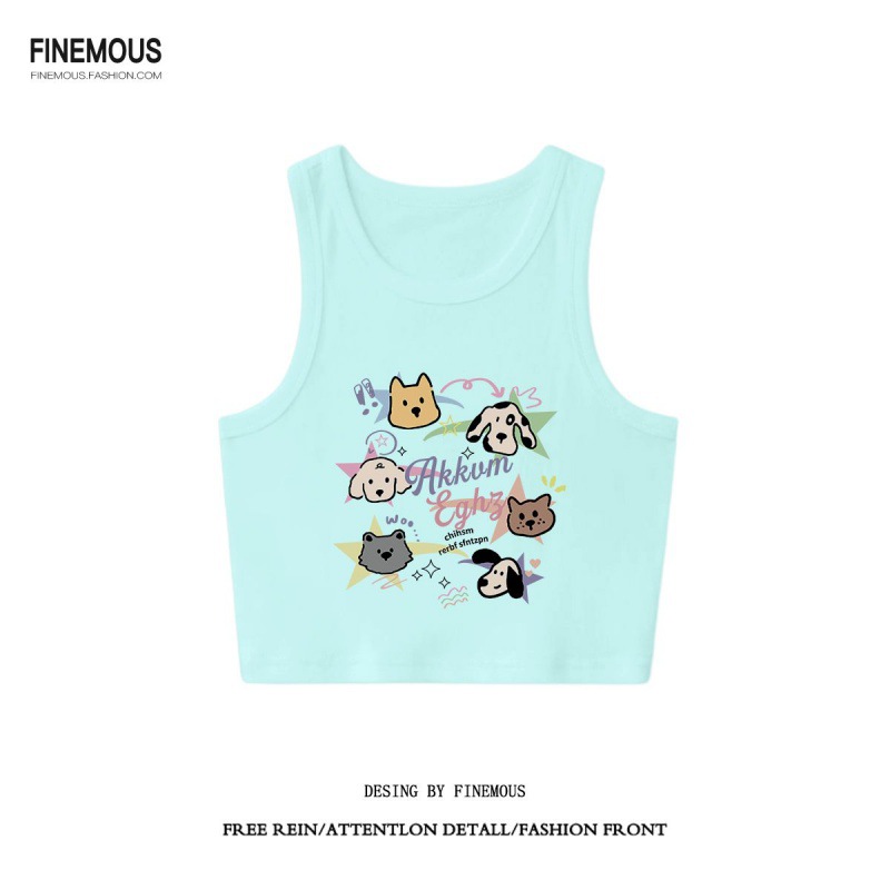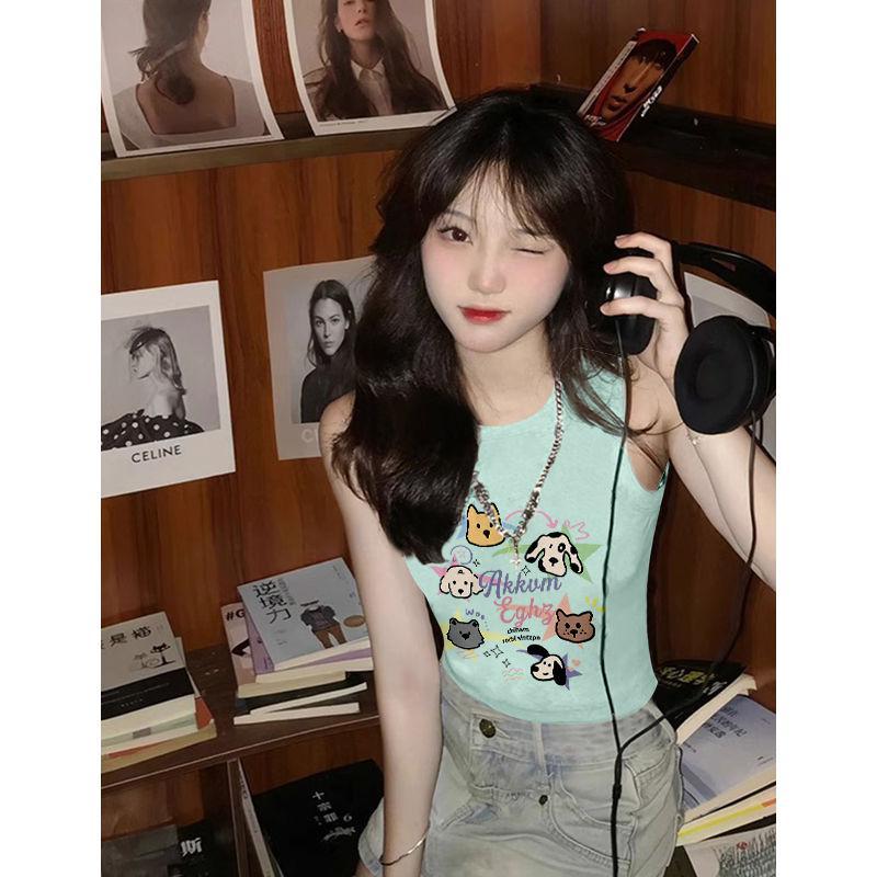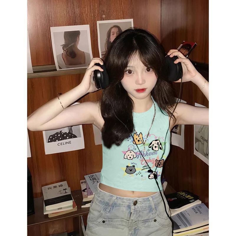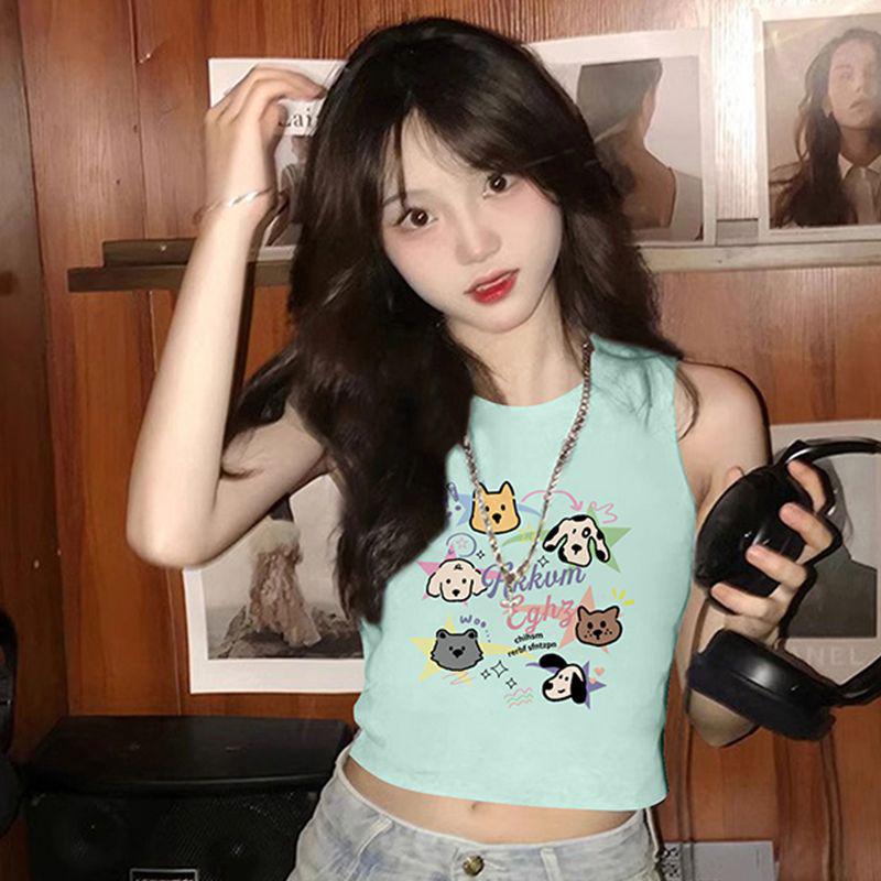 小个子薄荷曼波风显瘦修身短款背心女夏季新款别致印花无袖上衣潮