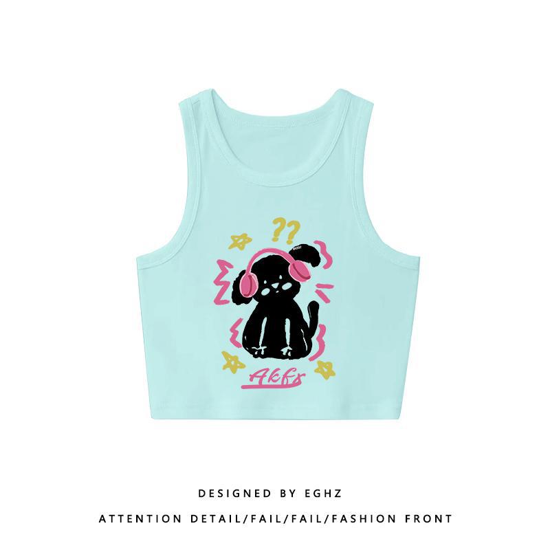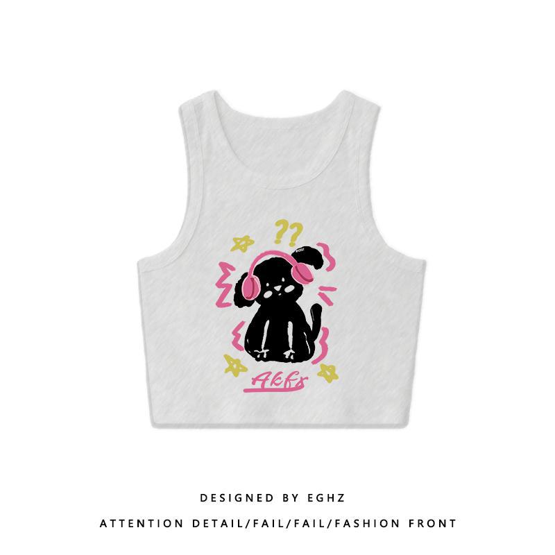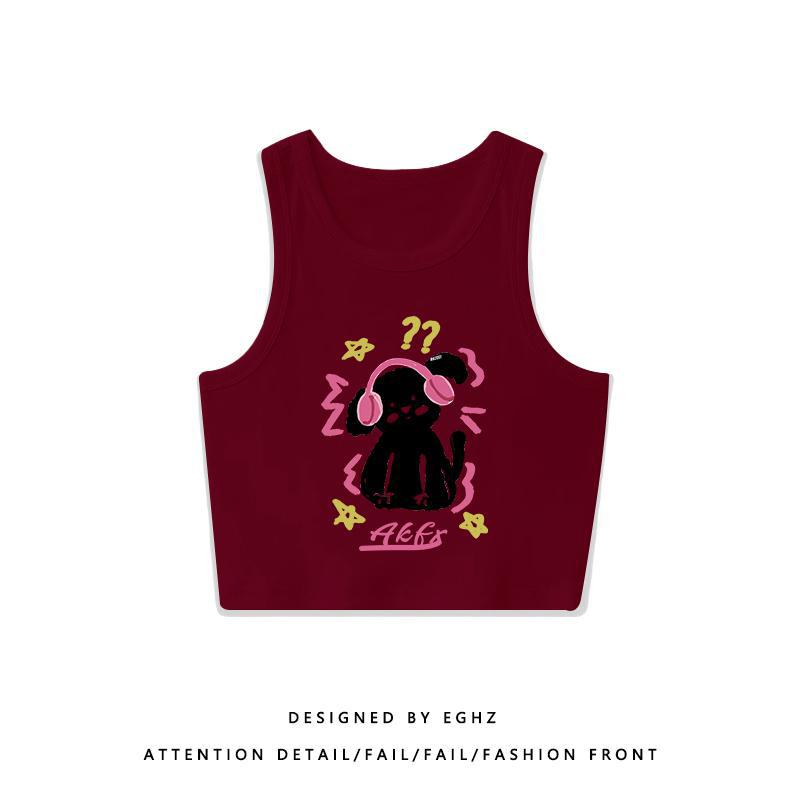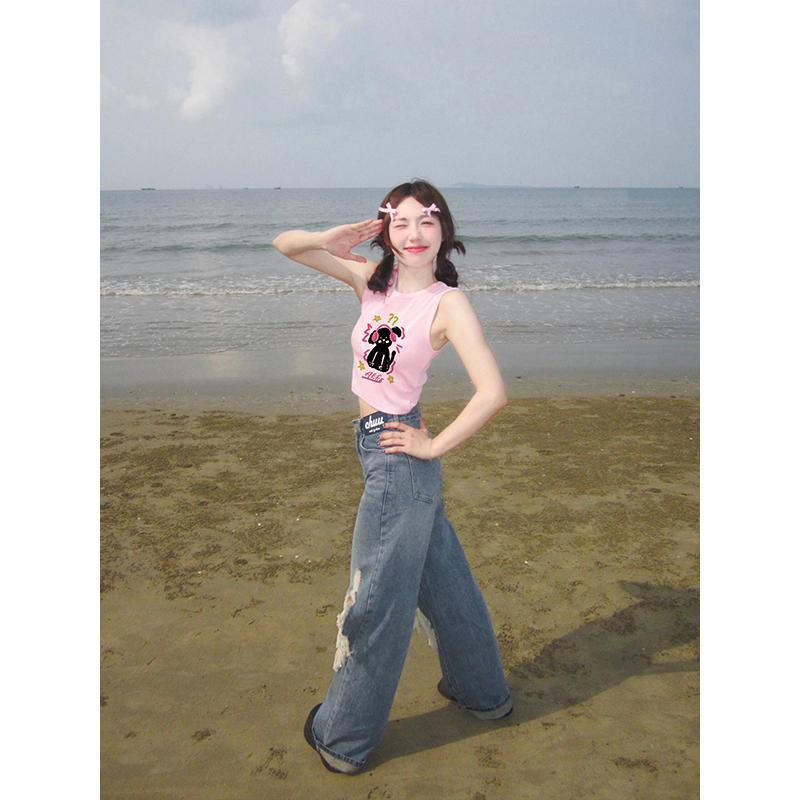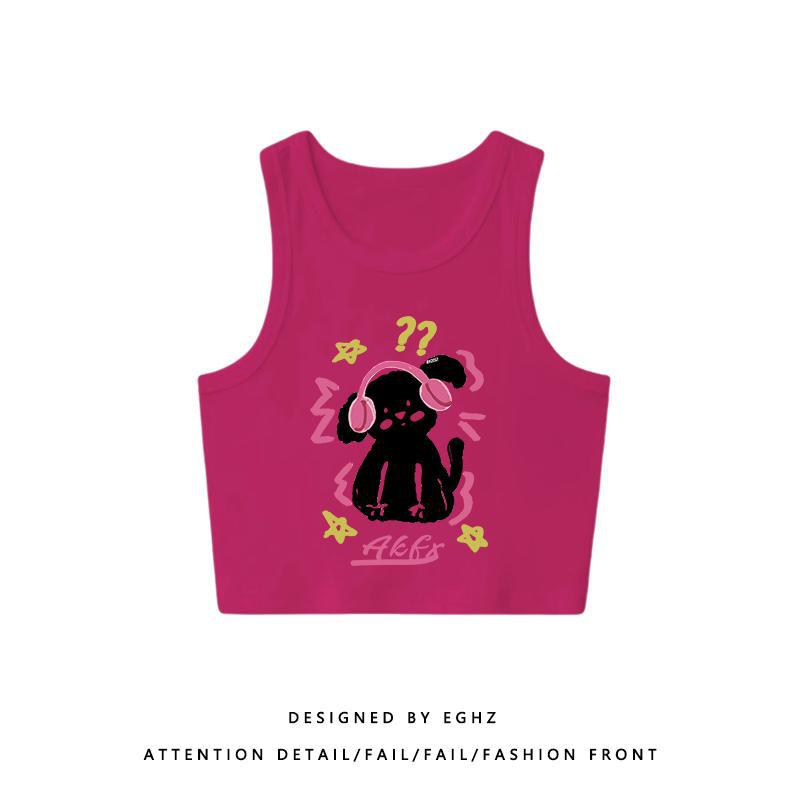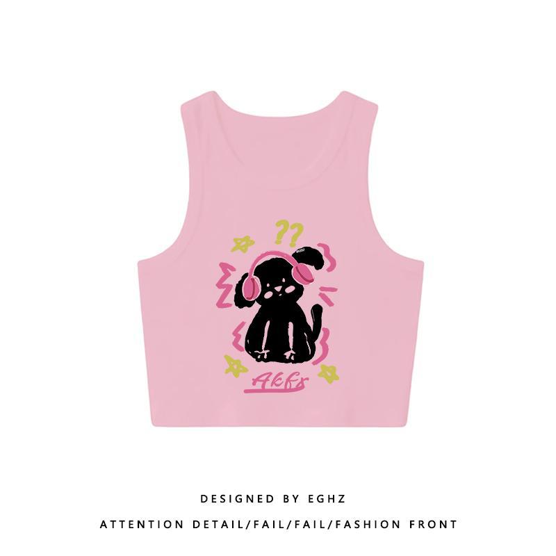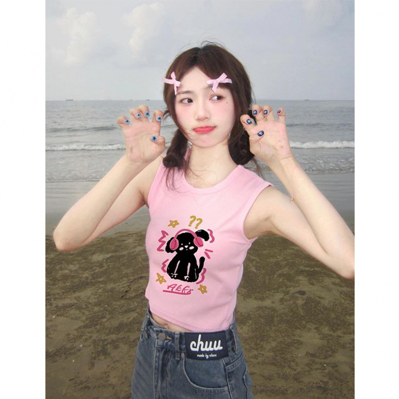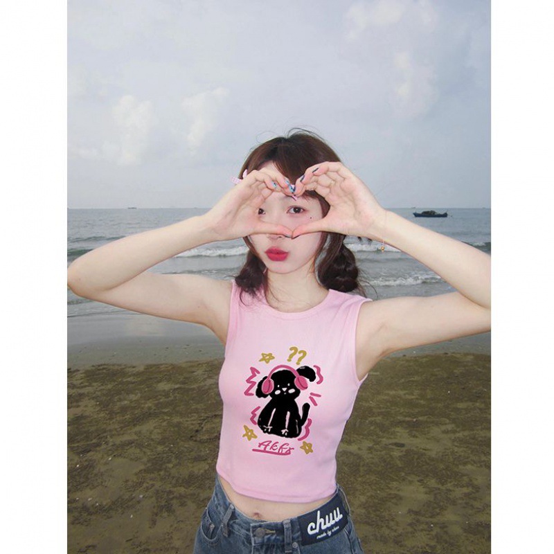 圆领重磅坎肩小背心女新款粉色潮牌设计感小众甜辣风正肩上衣
