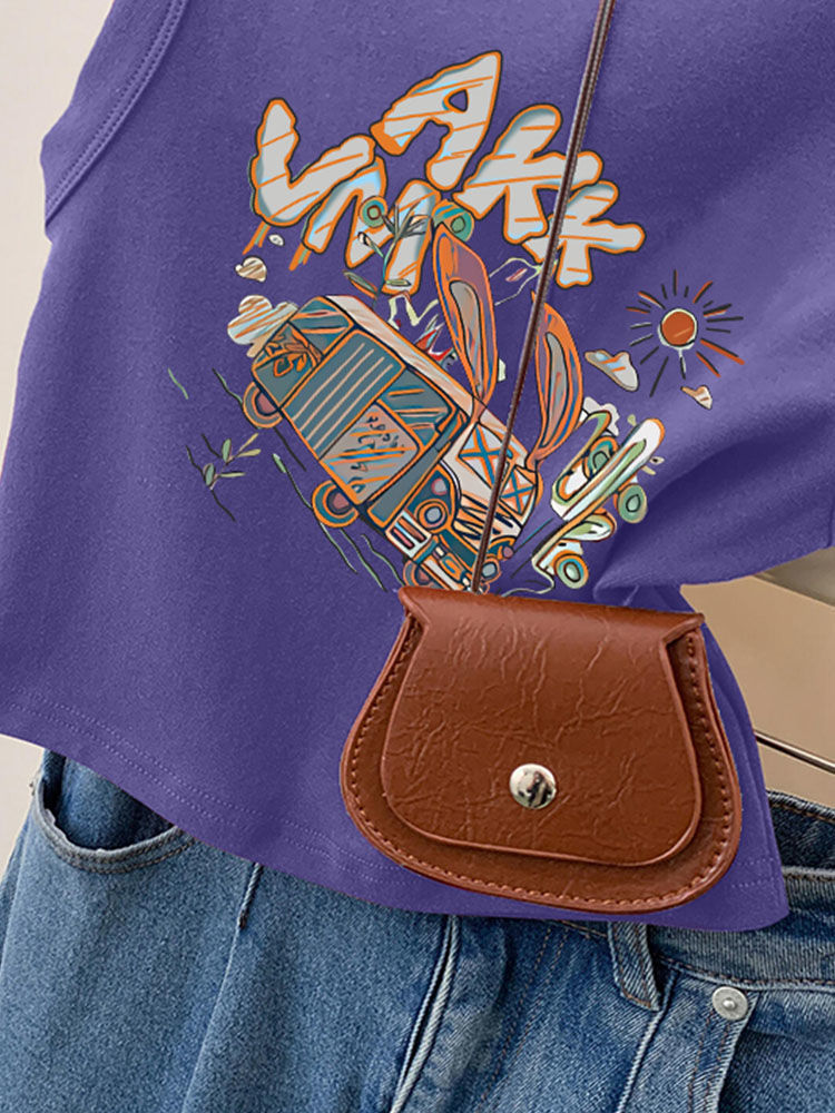 新款美式复古字母印花斜肩短袖T恤女夏季小众设计感宽松百搭上衣