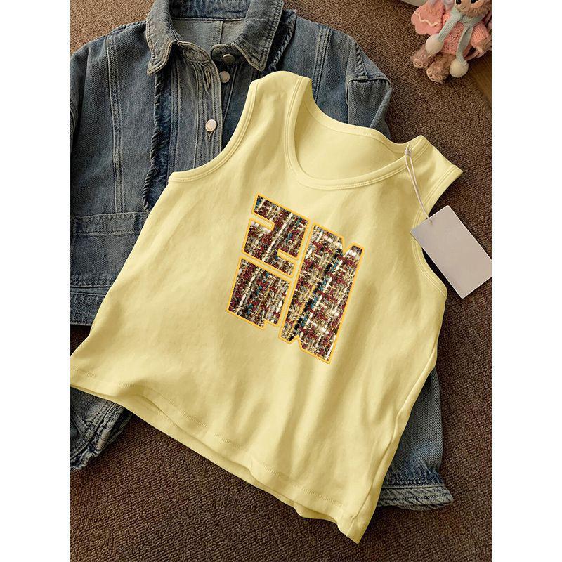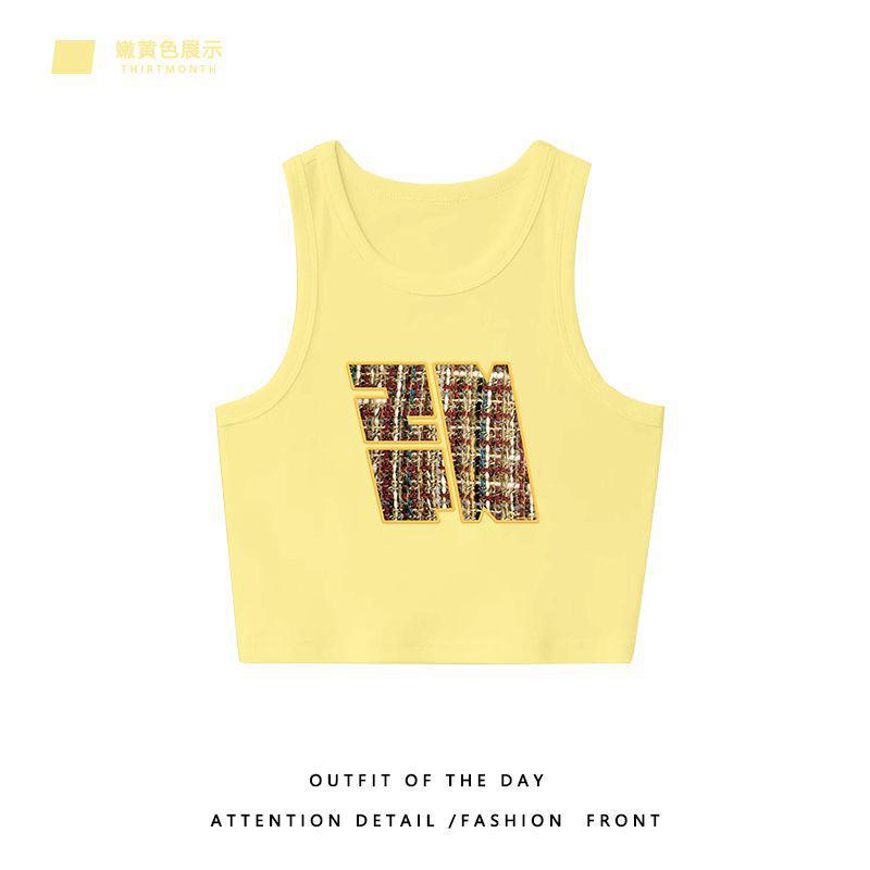 美式嫩黄色宽肩带无袖吊带背心女夏季新款辣妹外穿短款上衣潮