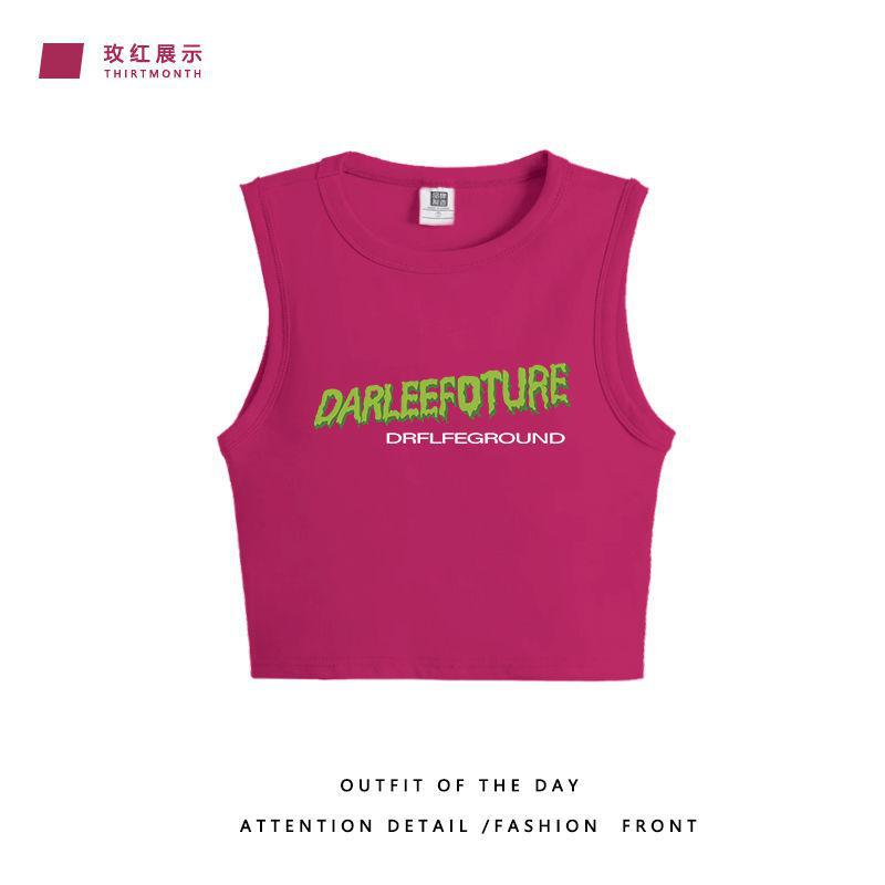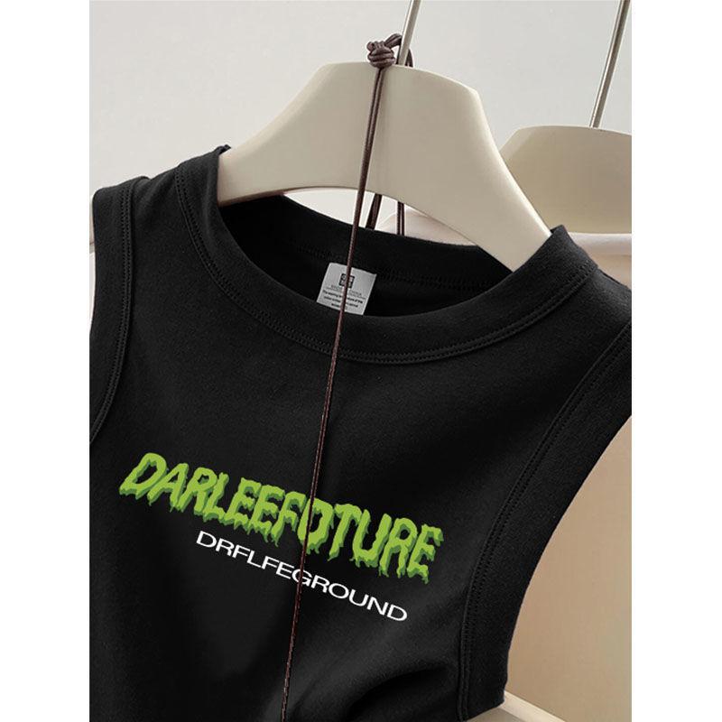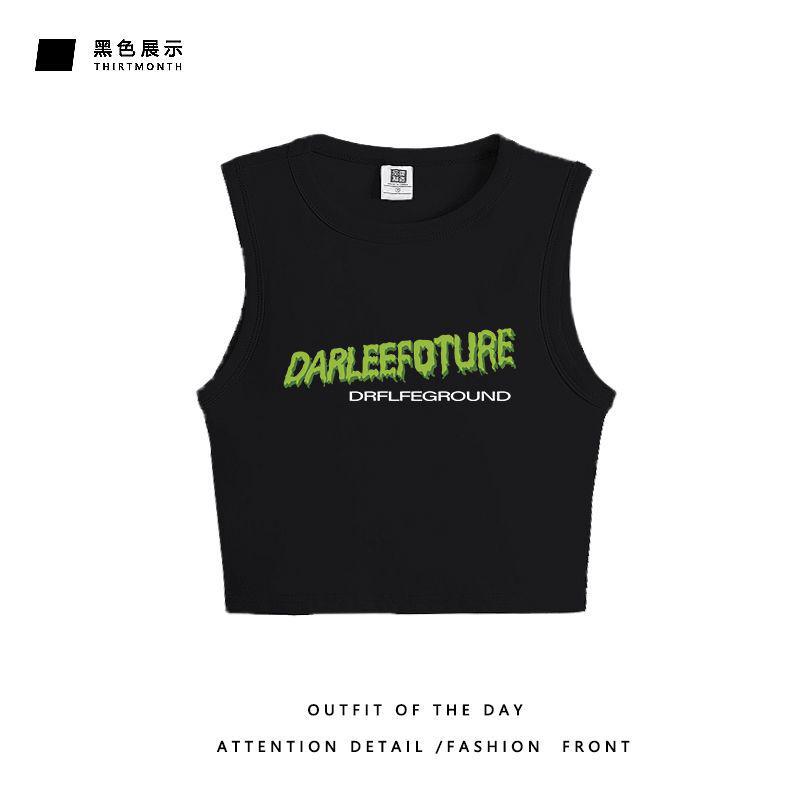美式辣妹风无袖小背心女夏季爆款潮牌印花小个子紧身收腰上衣