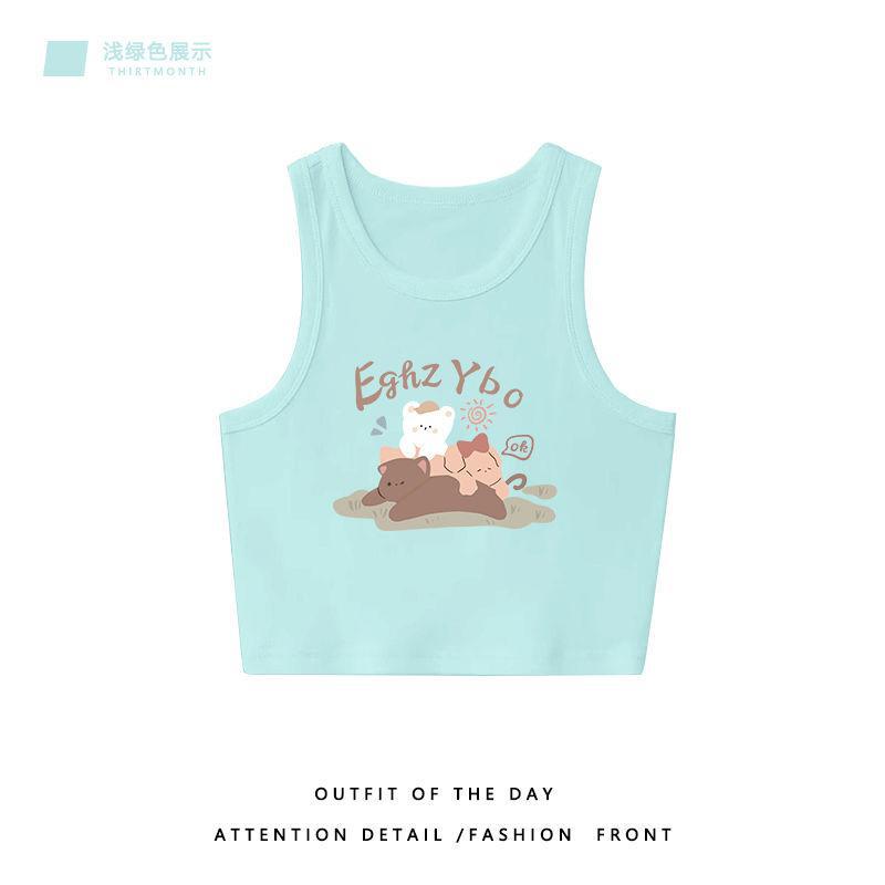 浅绿色宽肩带无袖吊带背心女内搭新款高级感收腰外穿短款上衣