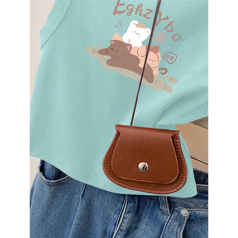 复古水洗做旧短袖t恤女夏季情侣夏短款抽绳辣妹正肩美式辣妹上衣
