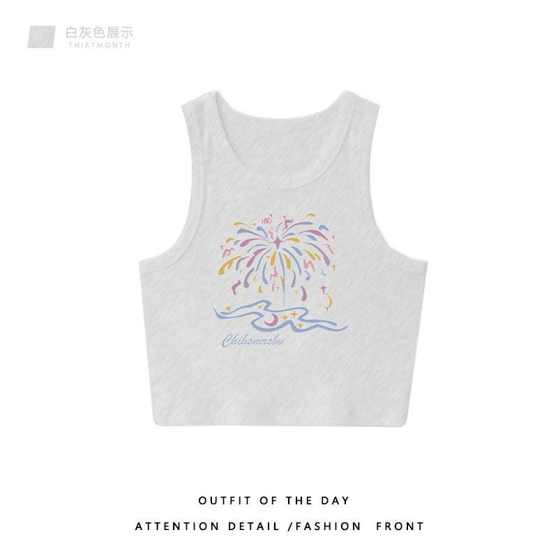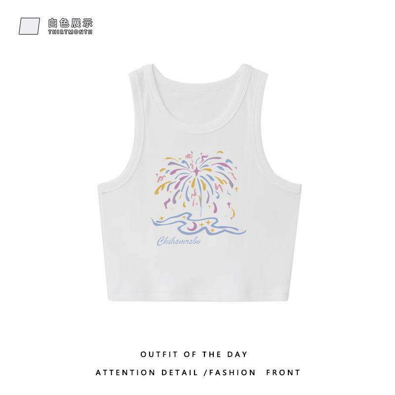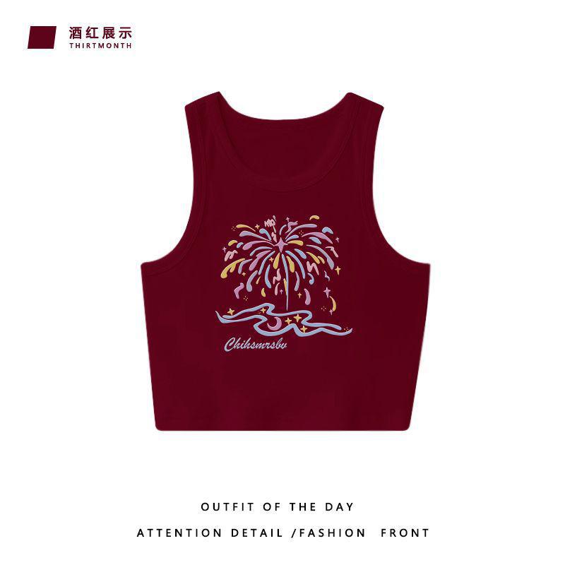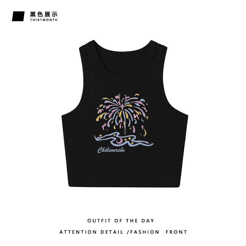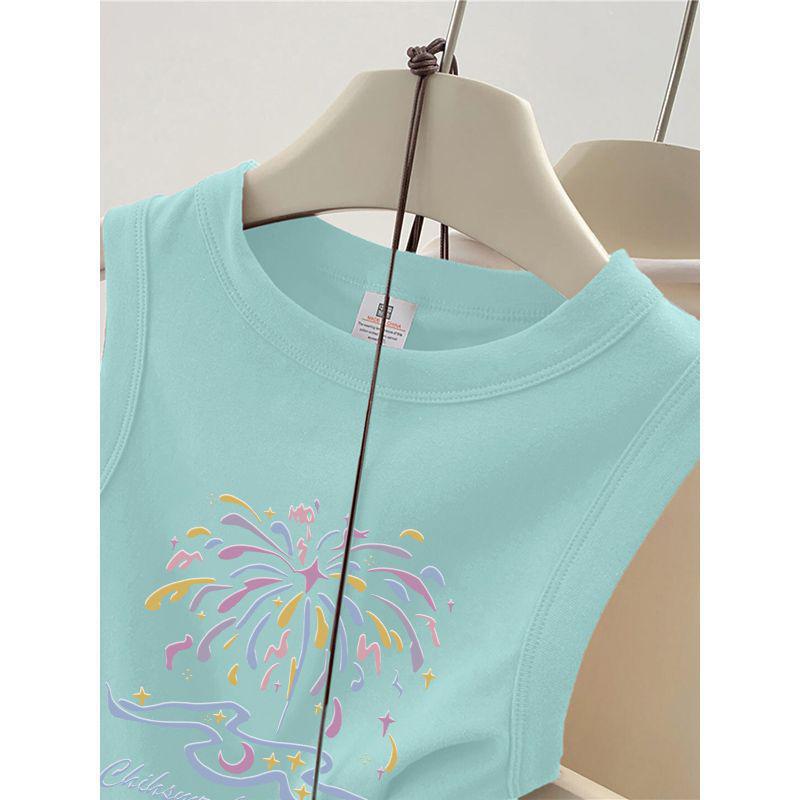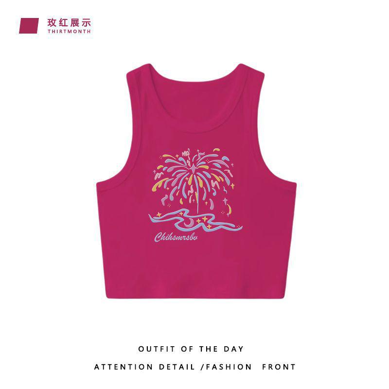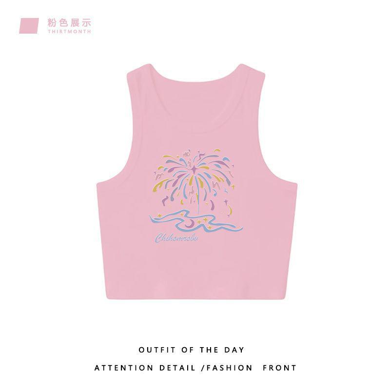 圆领重磅坎肩小背心女新款粉色潮牌设计感小众甜辣风正肩上衣