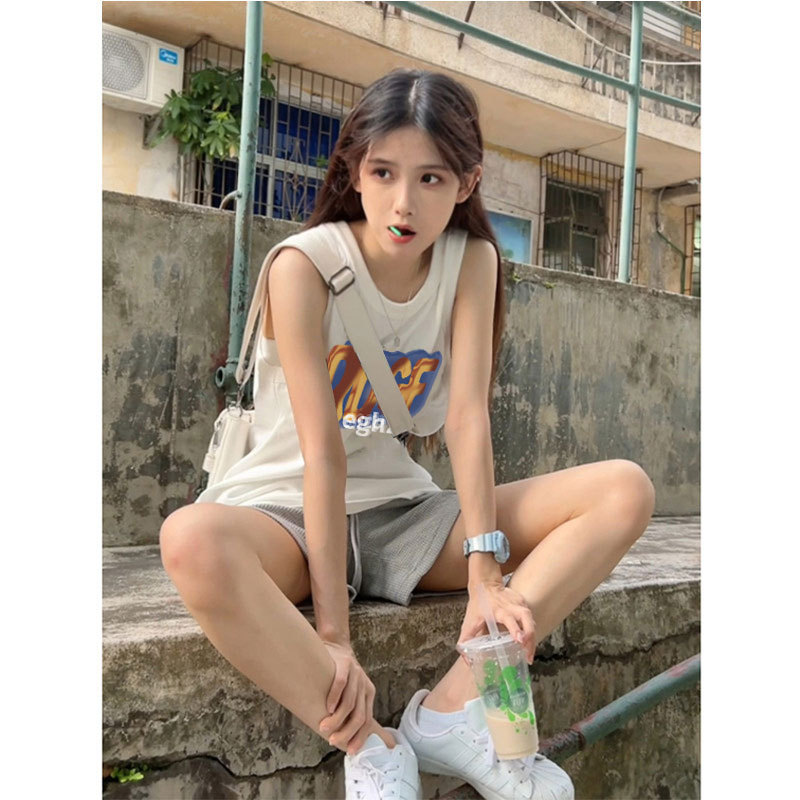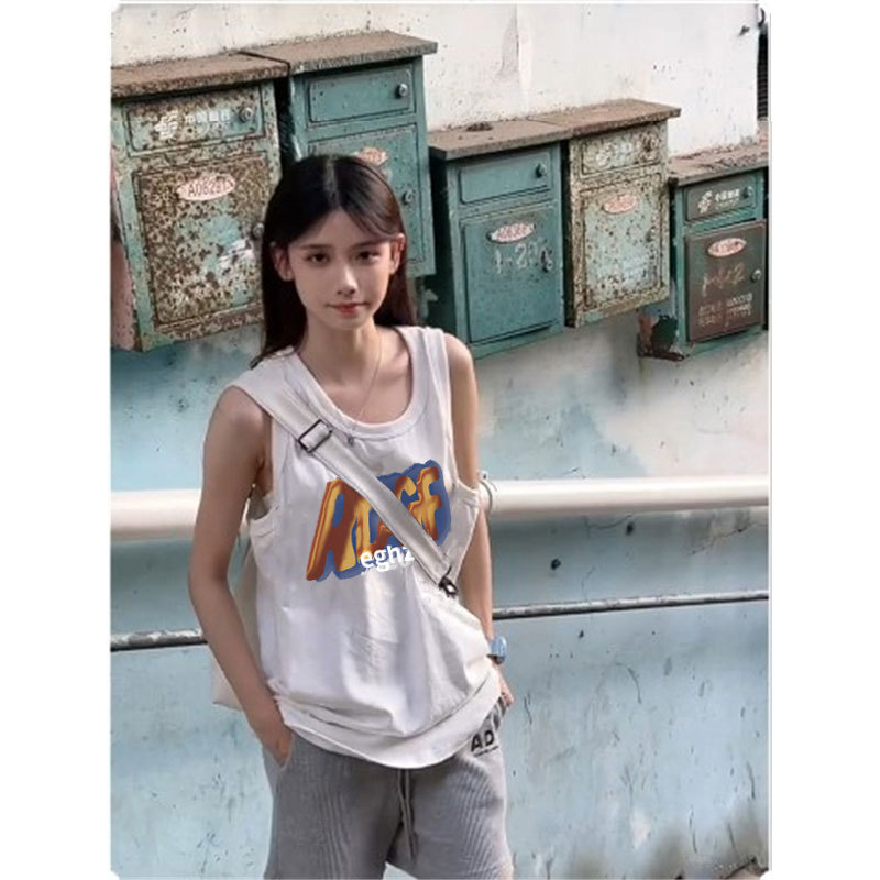 美式复古坎肩吊带背心女内搭小众独特别致白色运动外穿无袖上衣夏
