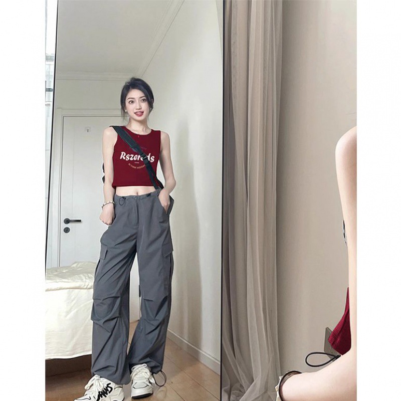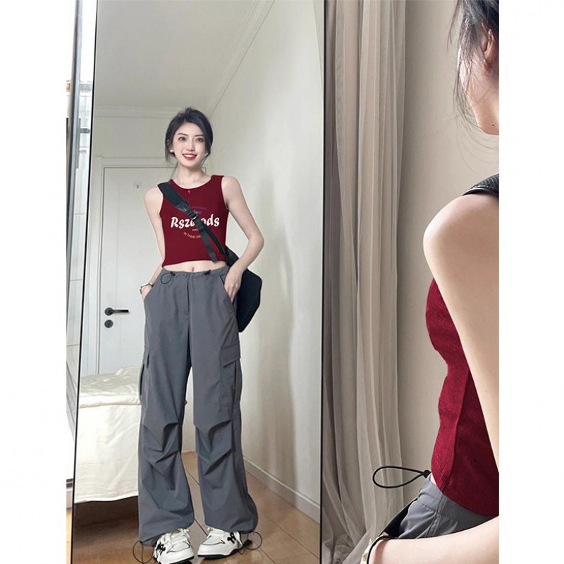 酒红色甜辣性感小背心女美式高街夏季内搭打底衫无袖小众坎肩上衣