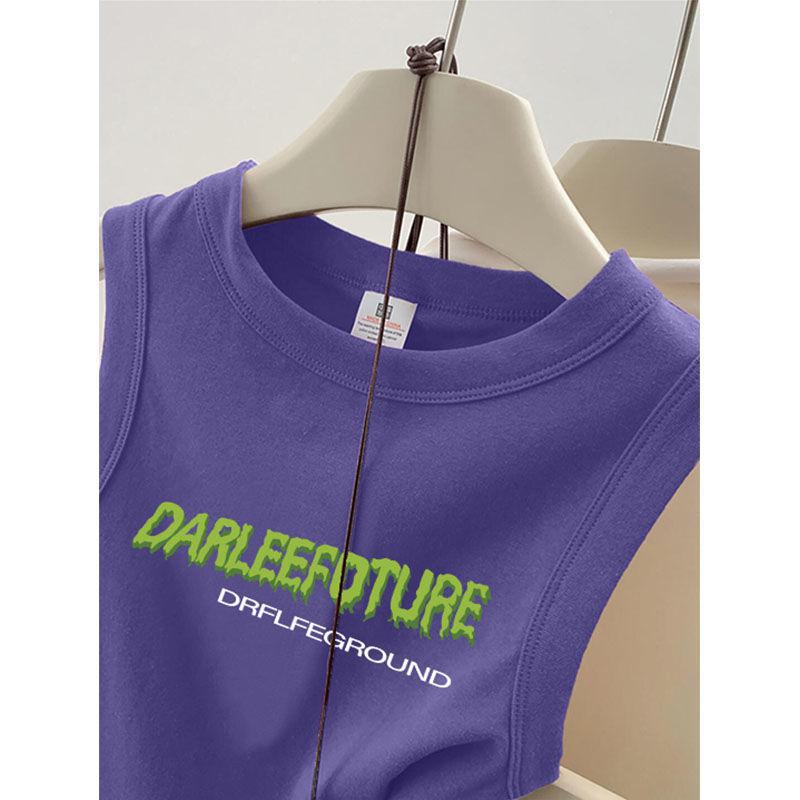 美式复古紫色短款背心吊带女夏季年新款紧身性感收腰无袖上衣