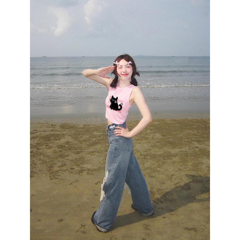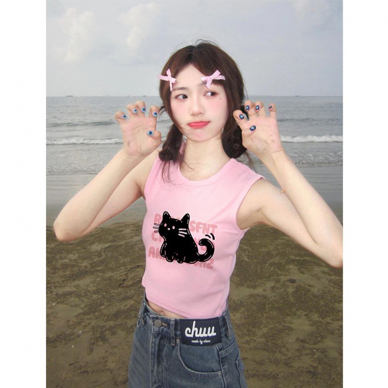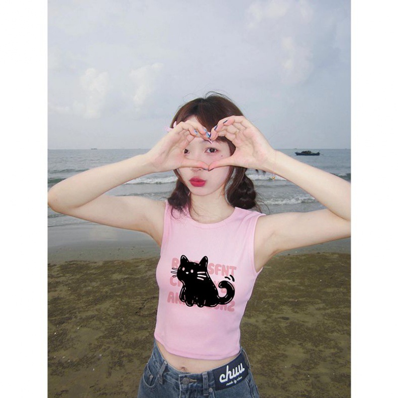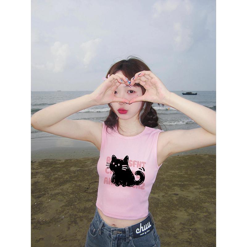 甜美纯欲风工字背心女夏季卡腰修身多巴胺色系吊带别致超好看上衣