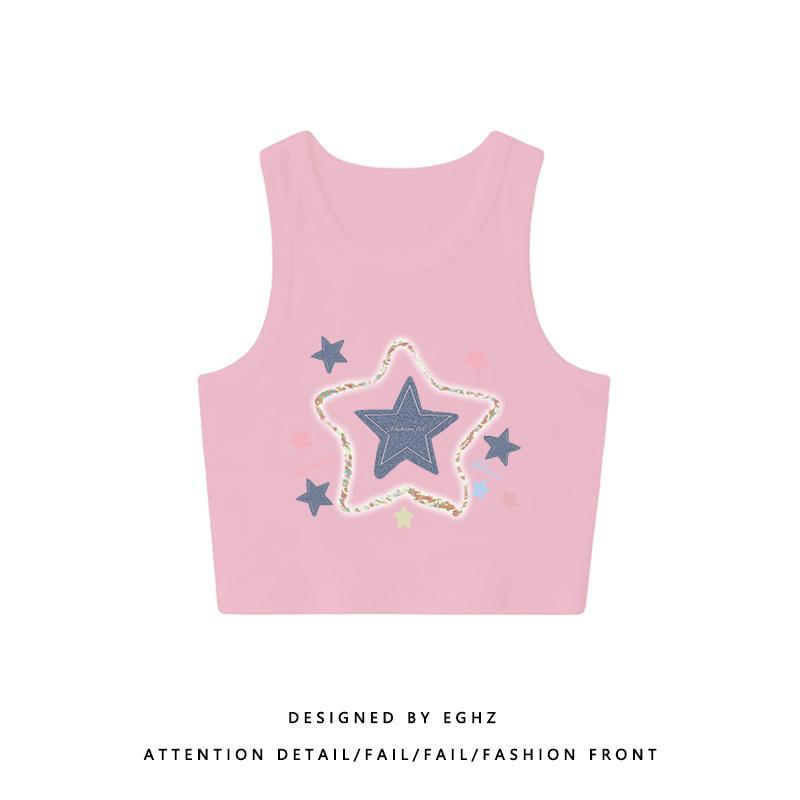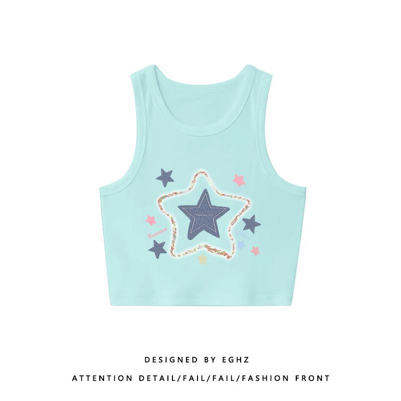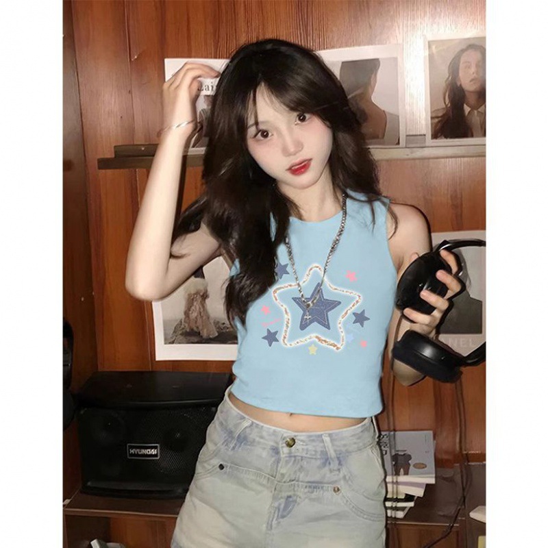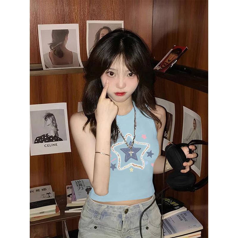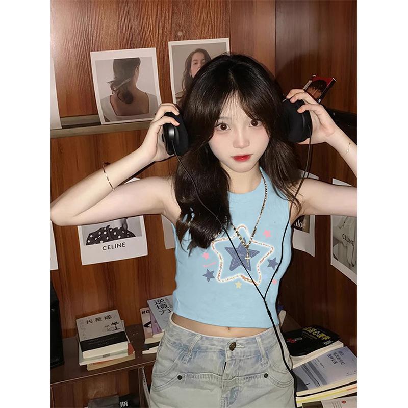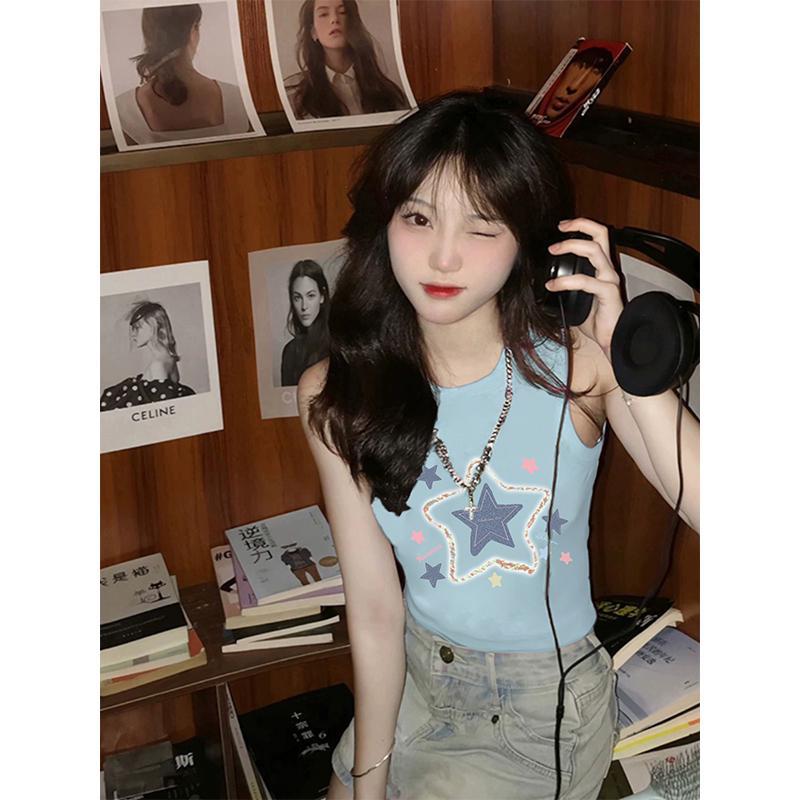 多巴胺浅蓝色夏季小背心女装新款美式高街原创无袖小衫上衣潮