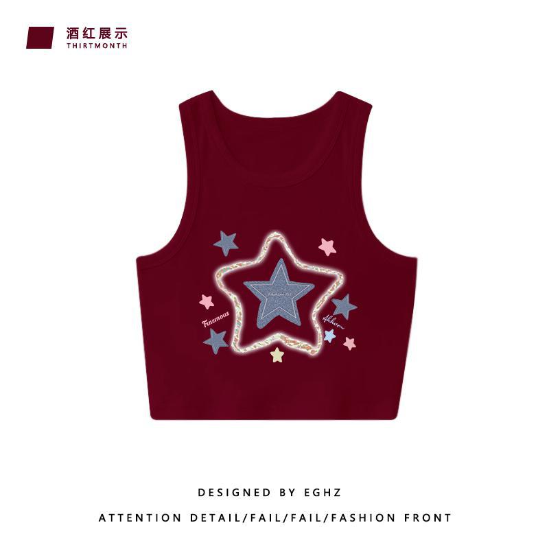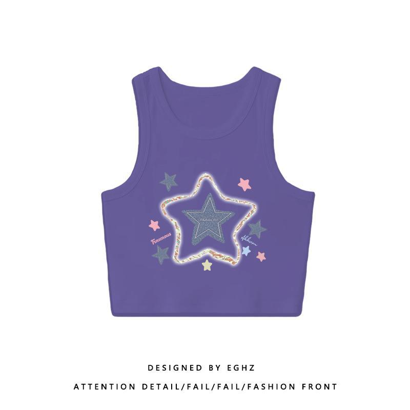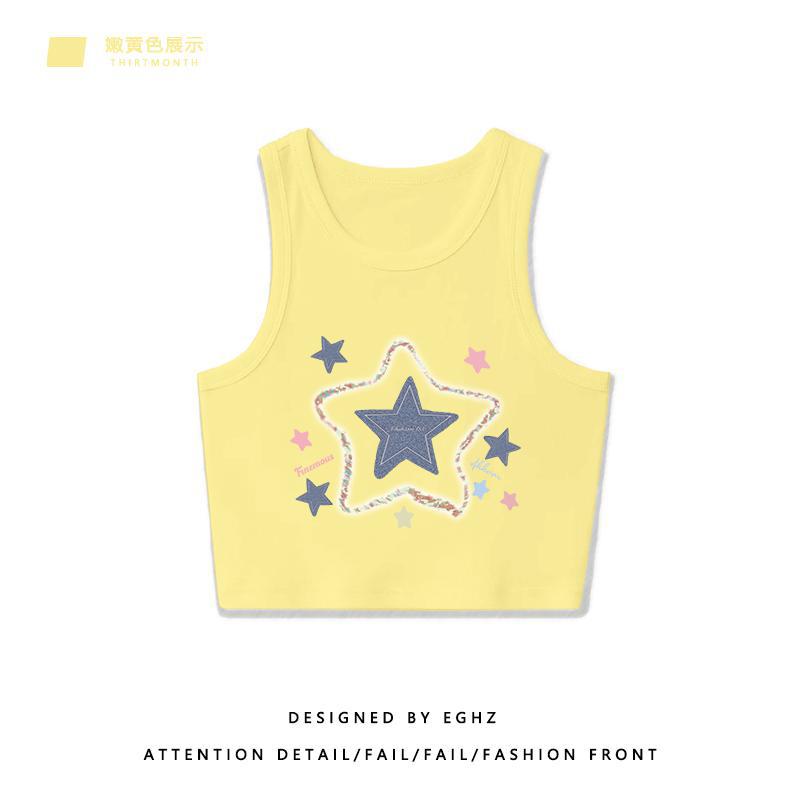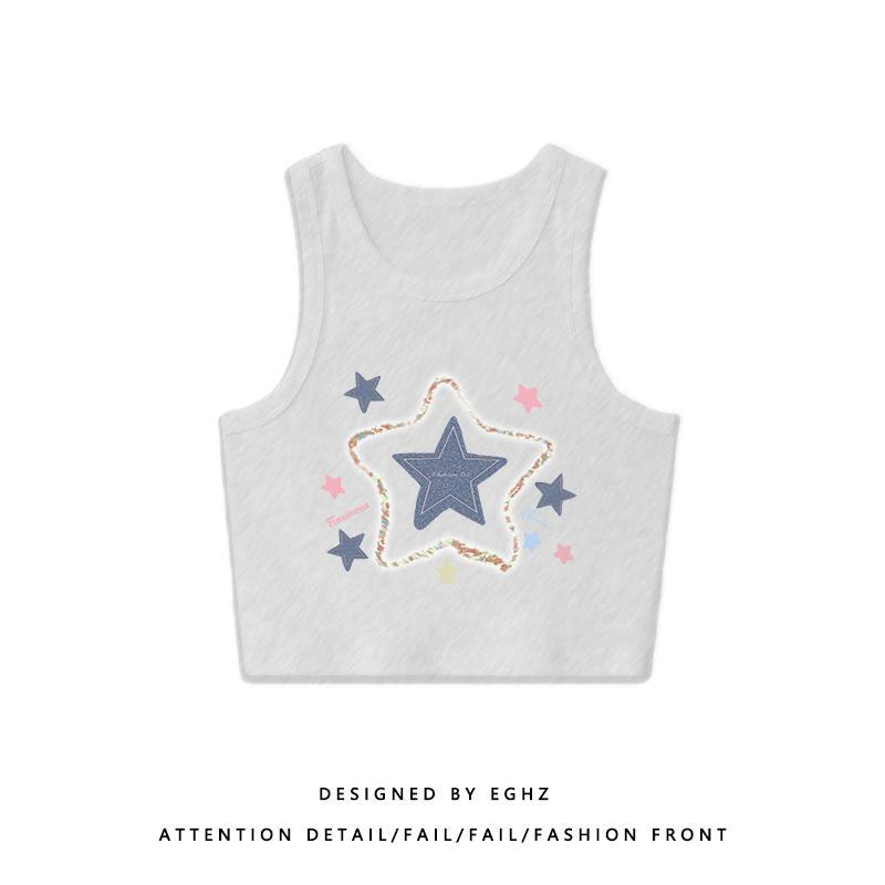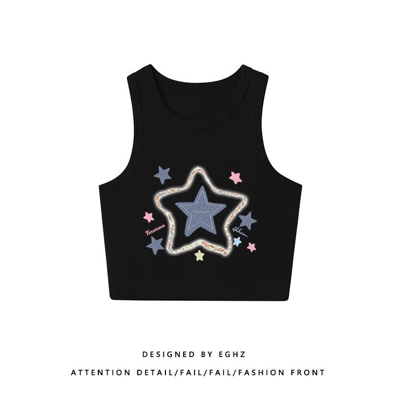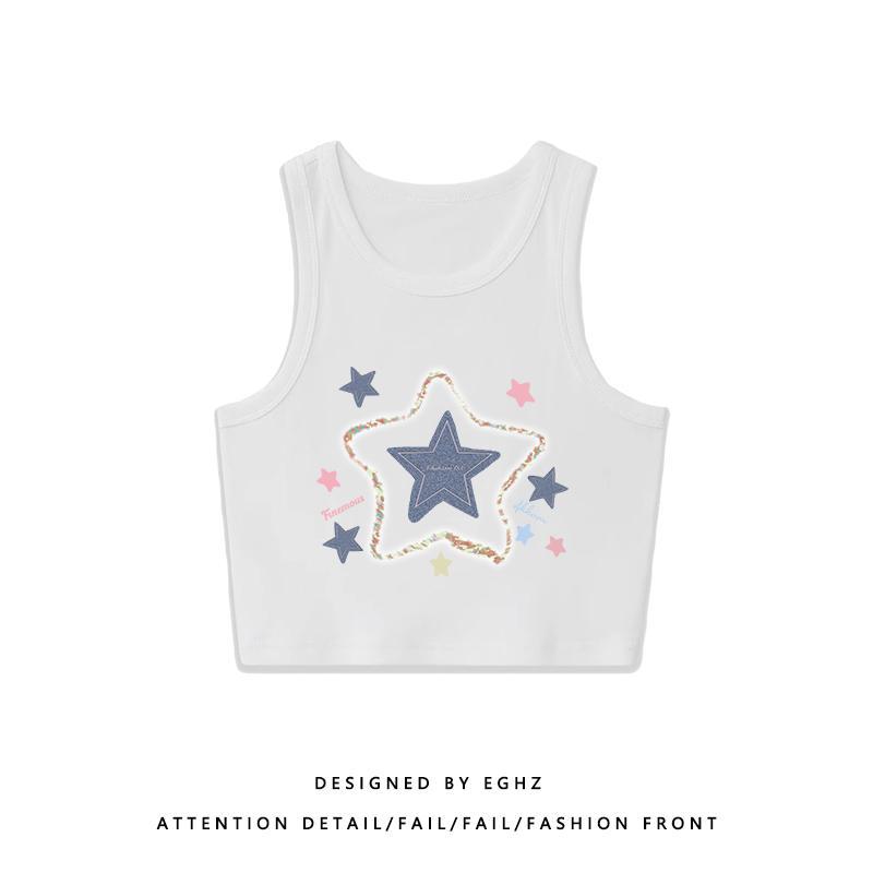 多巴胺浅蓝色夏季小背心女装新款美式高街原创无袖小衫上衣潮