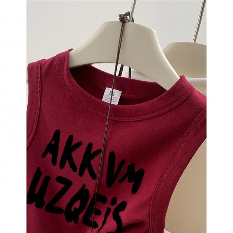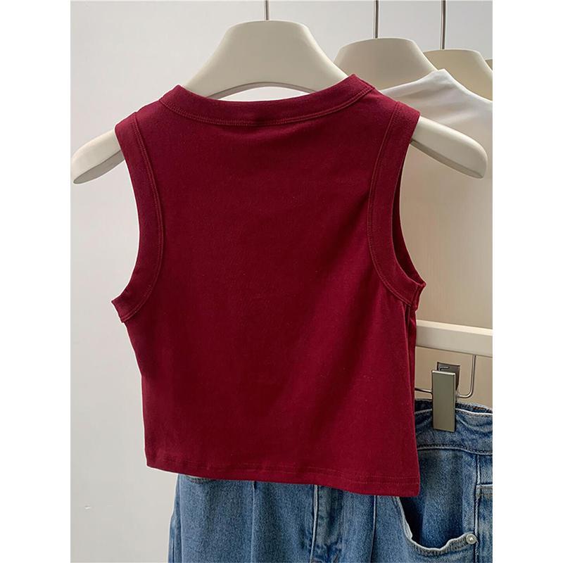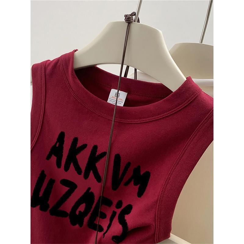 酒红色美式辣妹小背心女夏季修身显瘦短款无袖内搭可外穿小众上衣