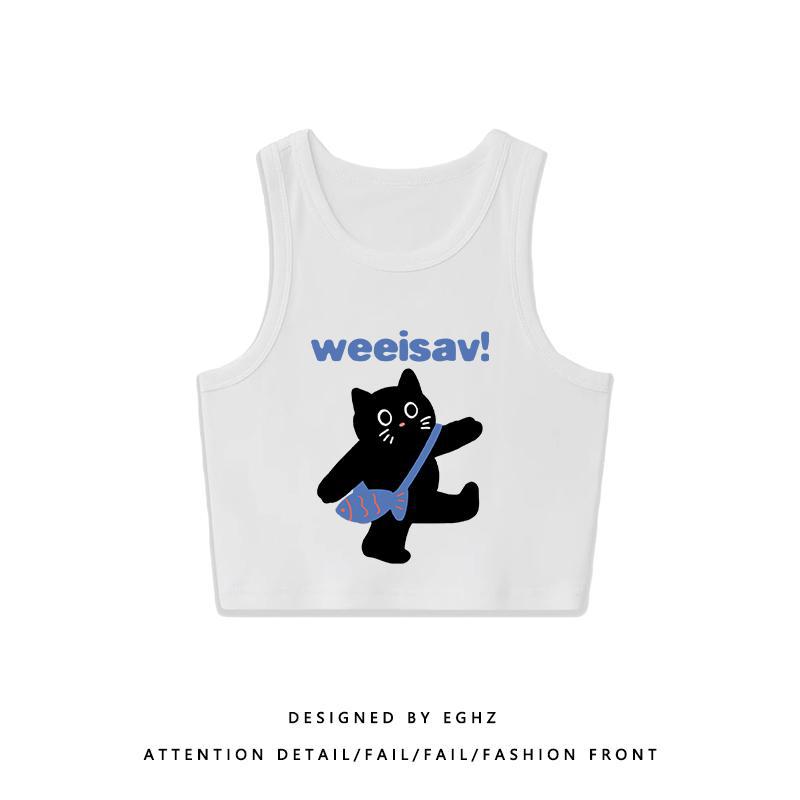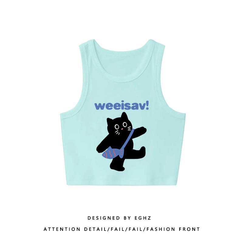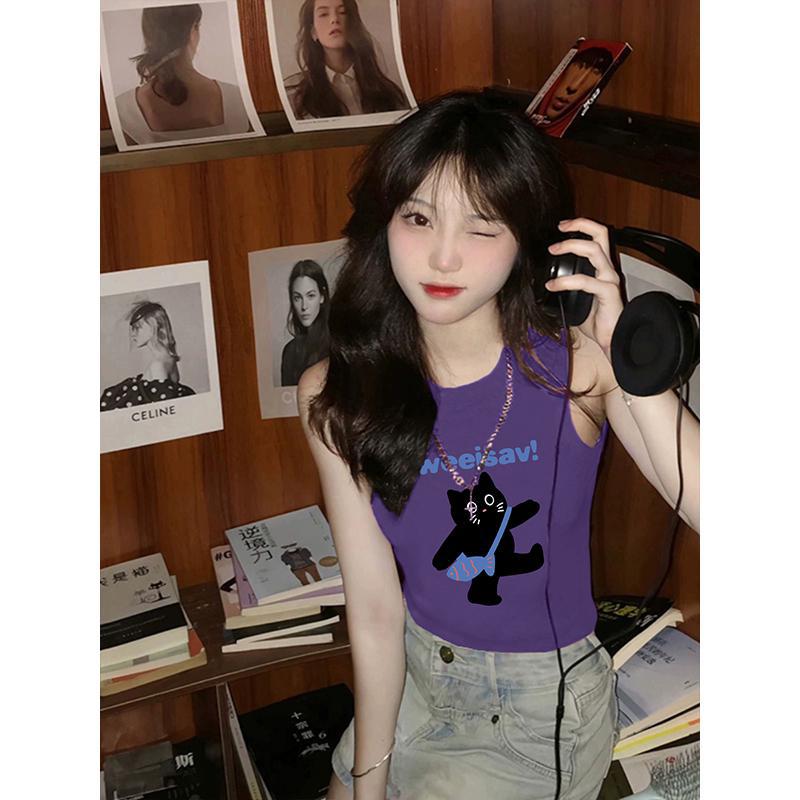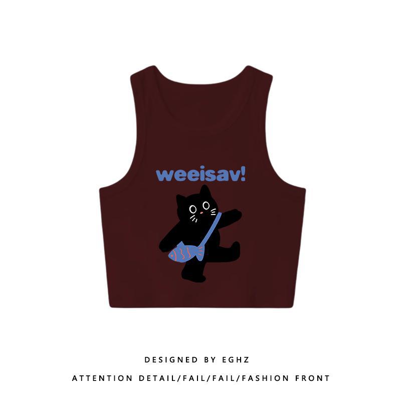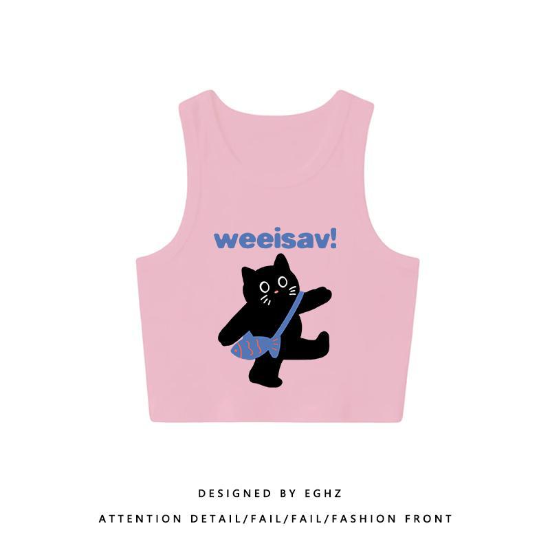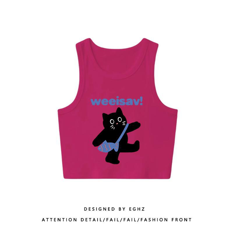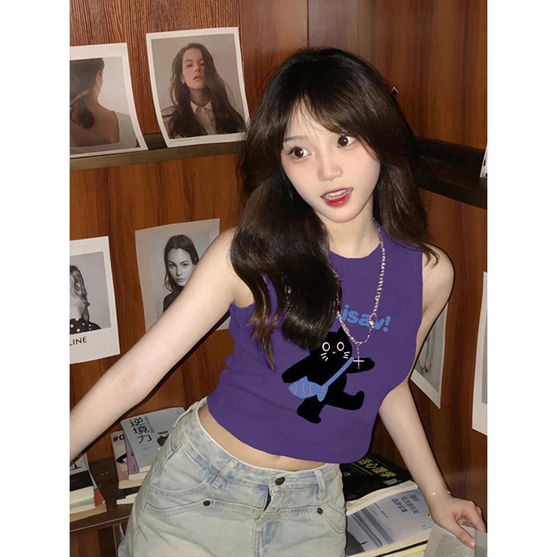 圆领正肩无袖小吊带夏季女款爆款小众高街潮牌收腰小个子短款上衣