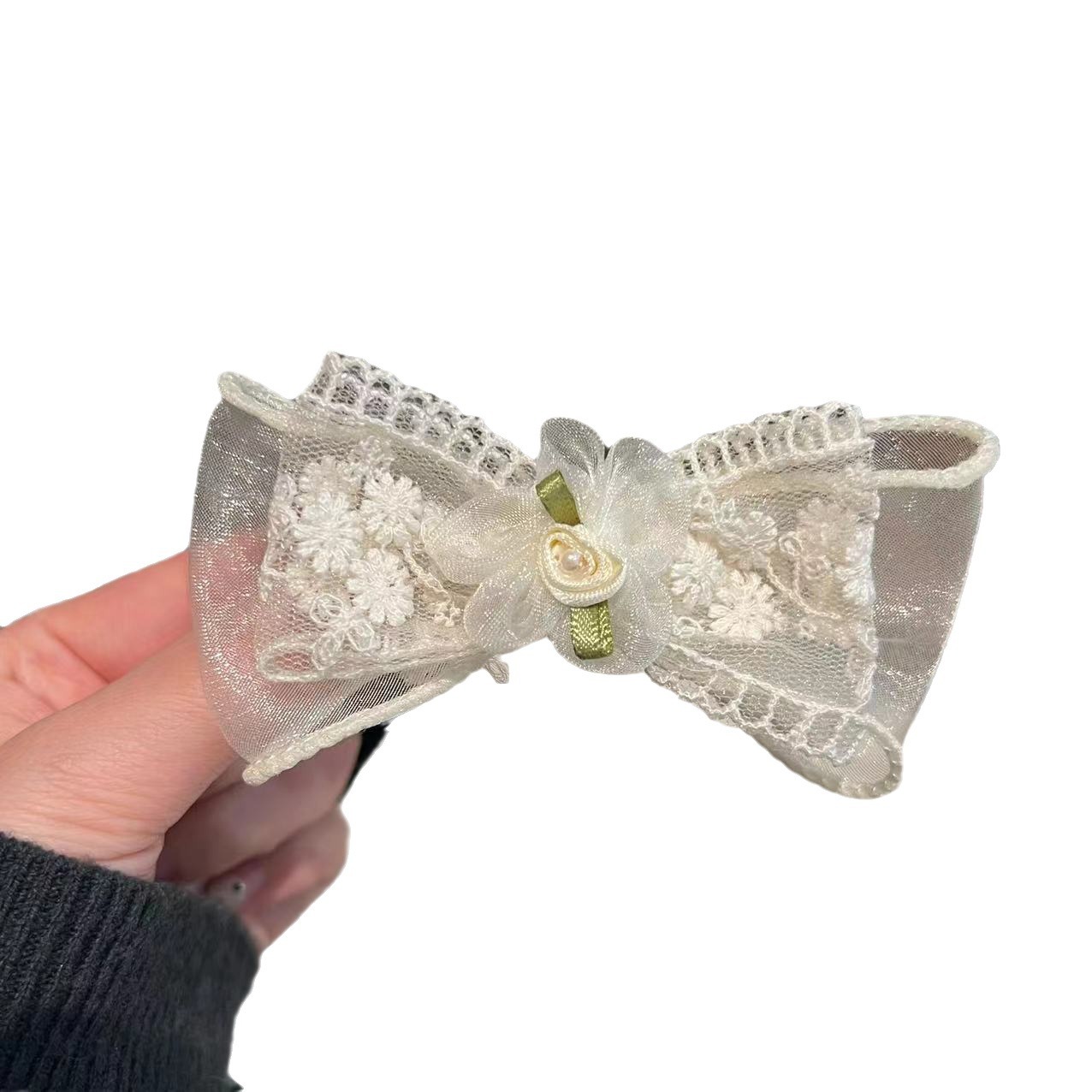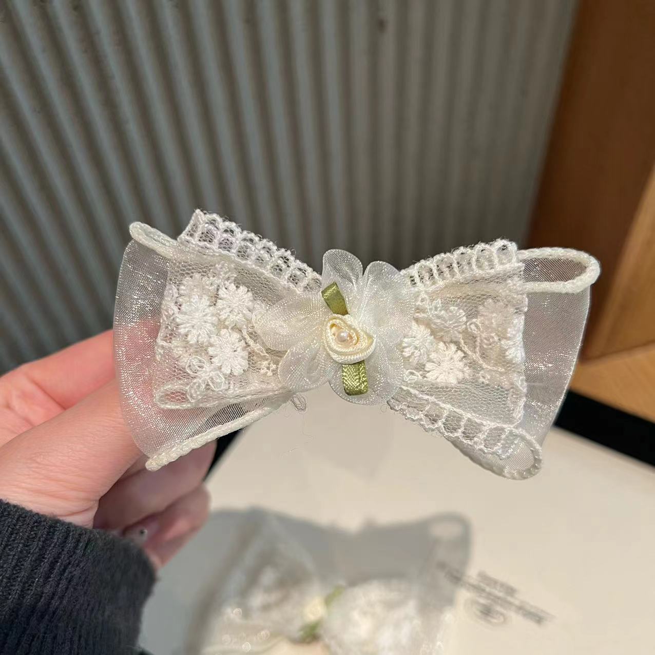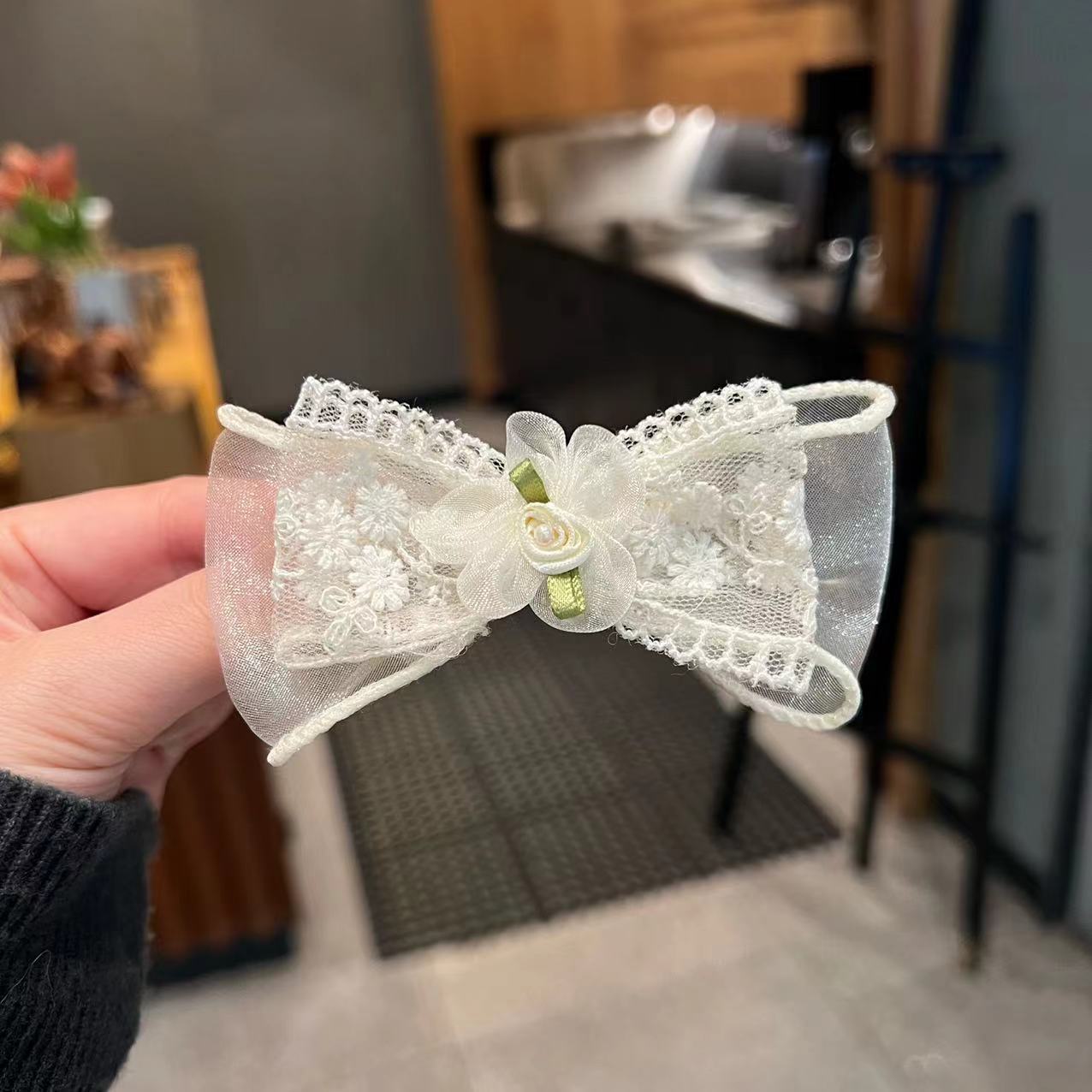 温柔春日少女超仙蕾丝花朵蝴蝶结发夹少女心鸭嘴夹顶夹后脑勺发卡