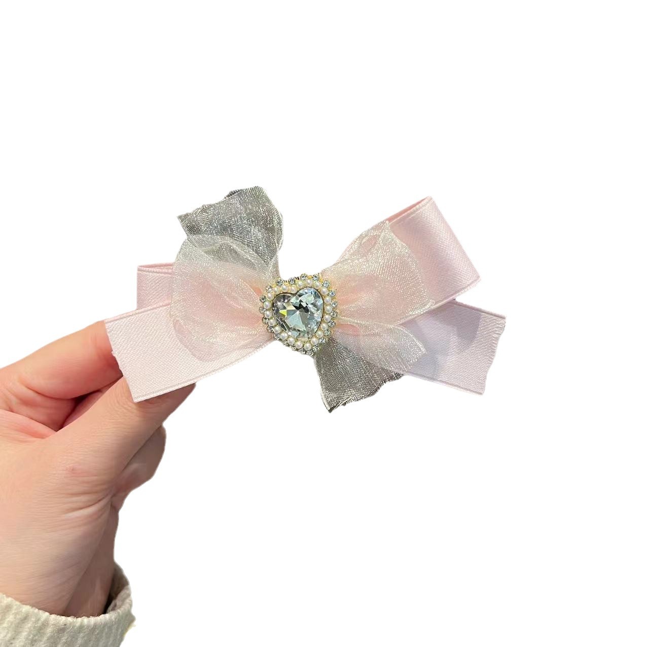 爱心闪钻蝴蝶结发夹—粉色