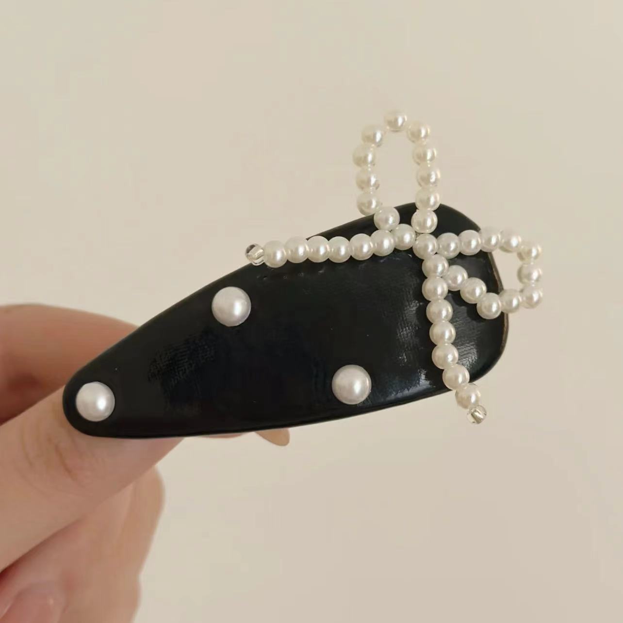 黑色—珍珠蝴蝶结发夹