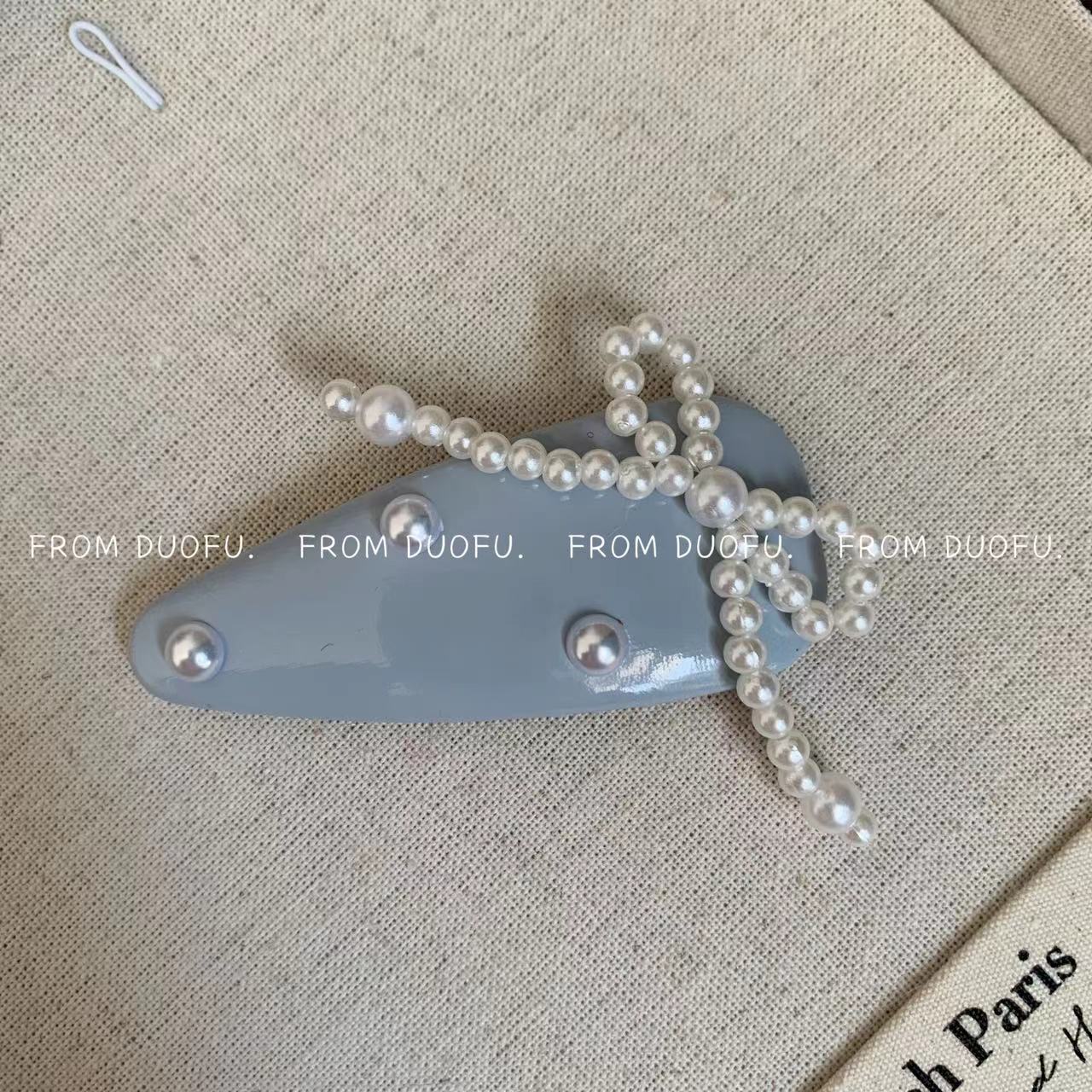 蓝色—珍珠蝴蝶结发夹