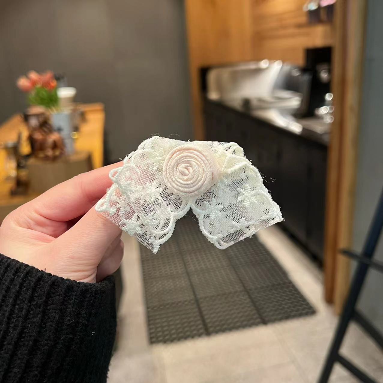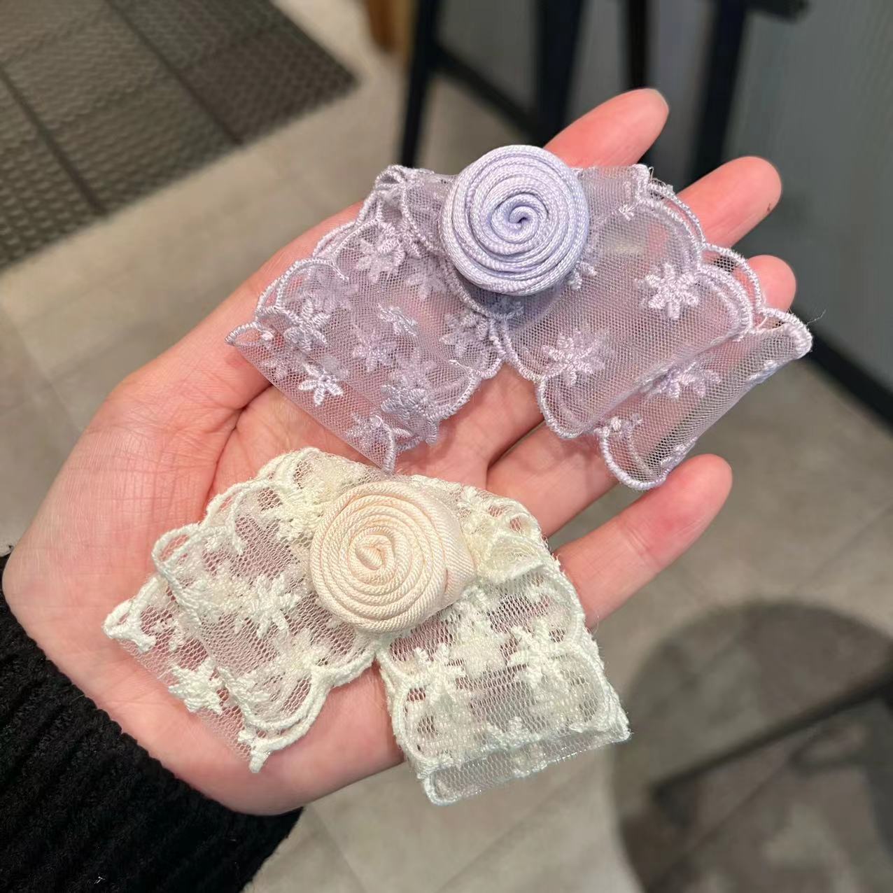 韩系蕾丝山茶花蝴蝶结花朵发夹温柔甜美透纱刘海侧边夹碎发夹头饰
