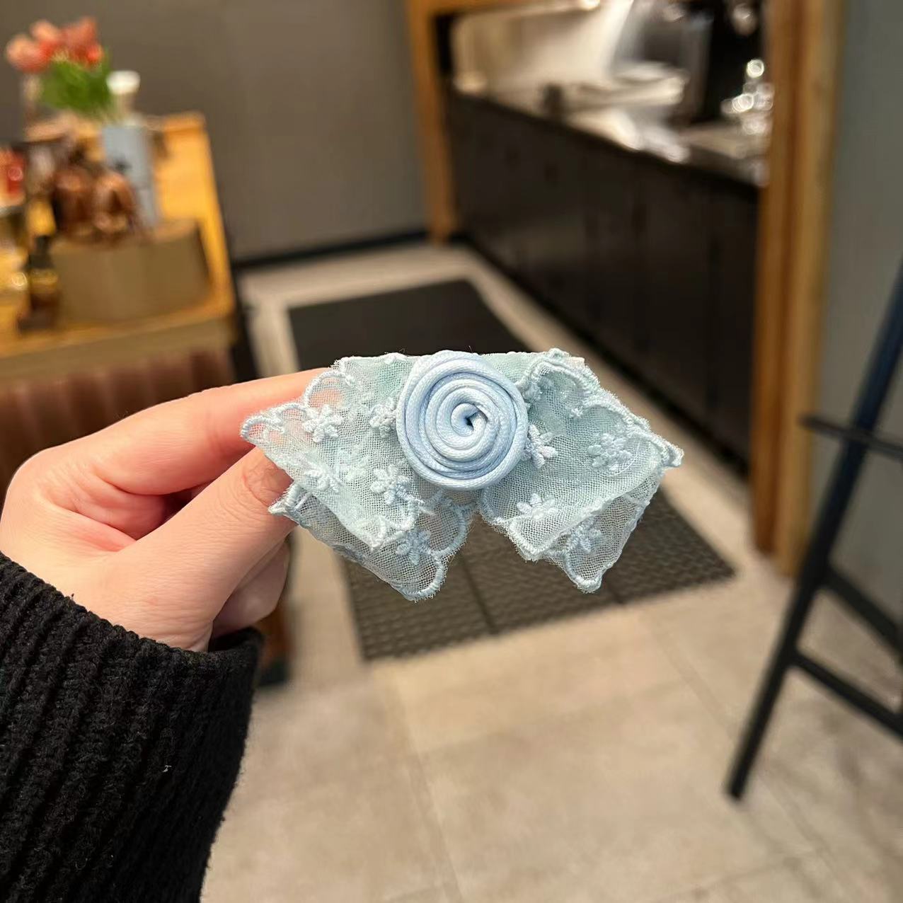 蕾丝蝴蝶结发夹—蓝色