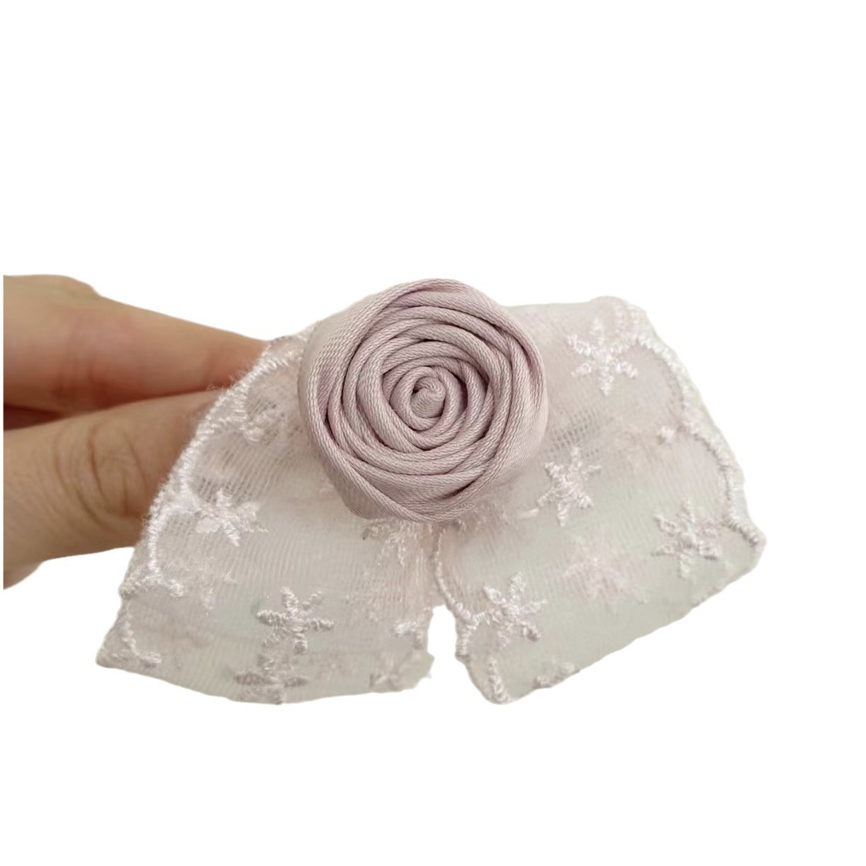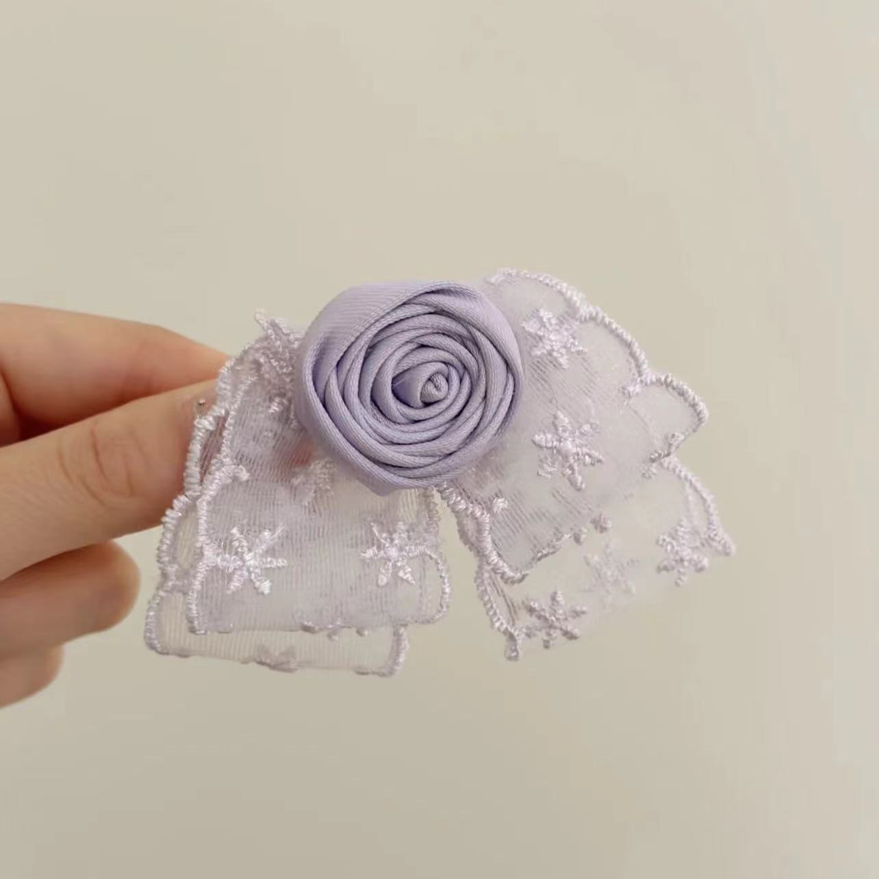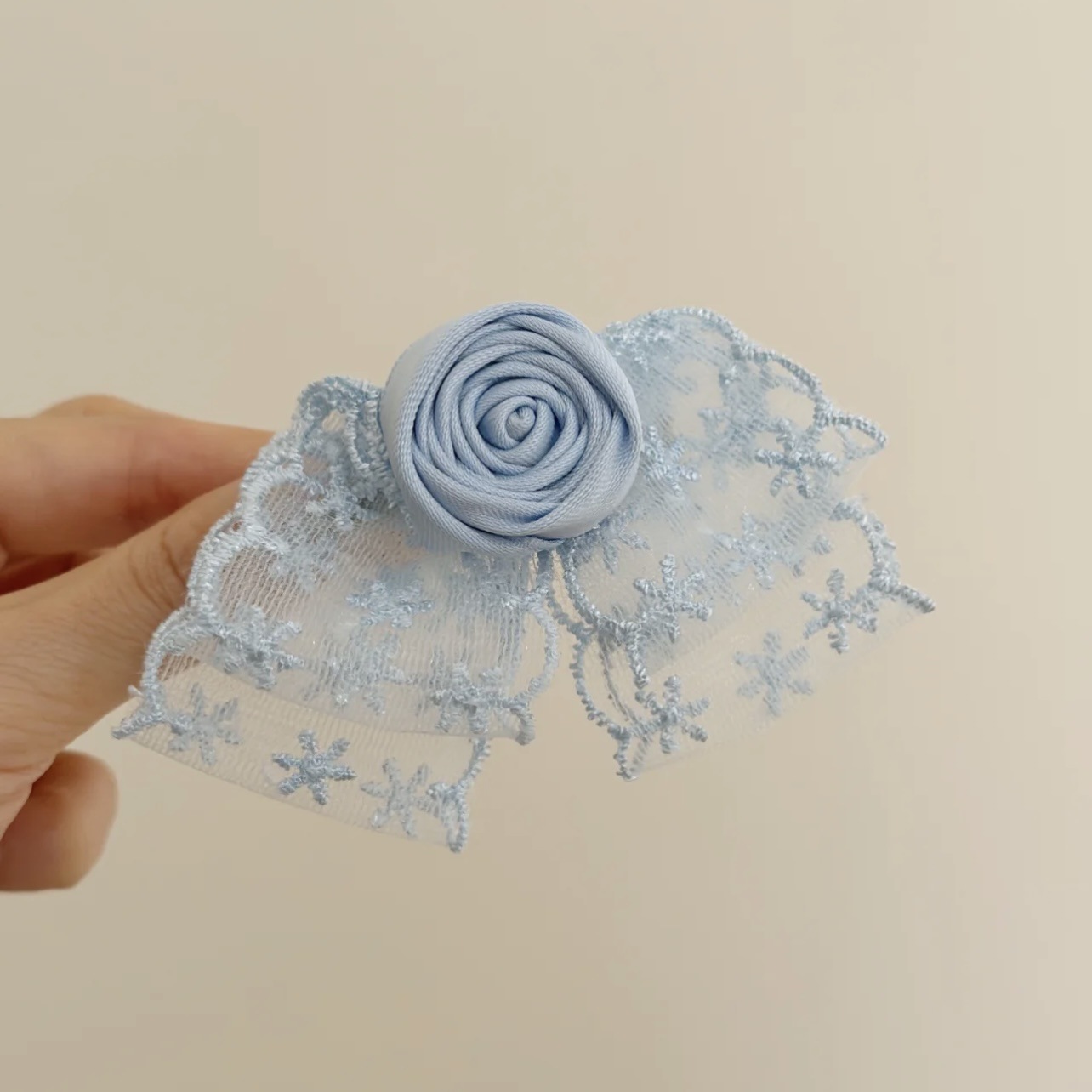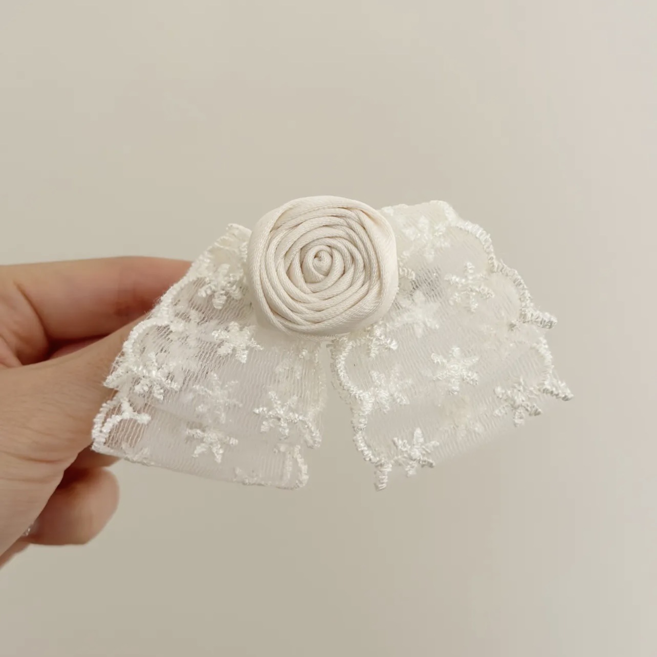 早春甜美温柔玫瑰山茶花蝴蝶结蕾丝发夹透沙飘带蝴蝶刘海夹发饰女
